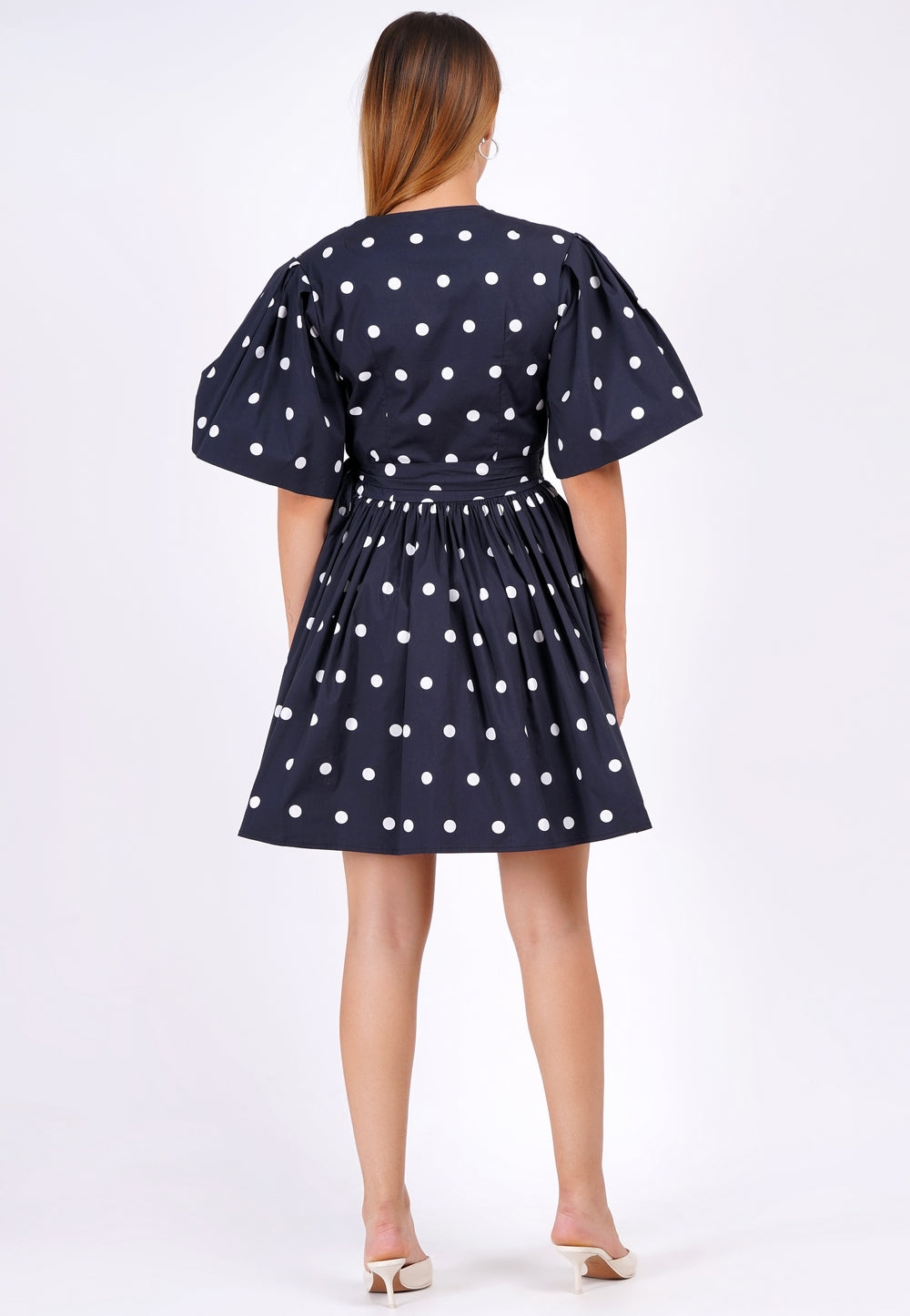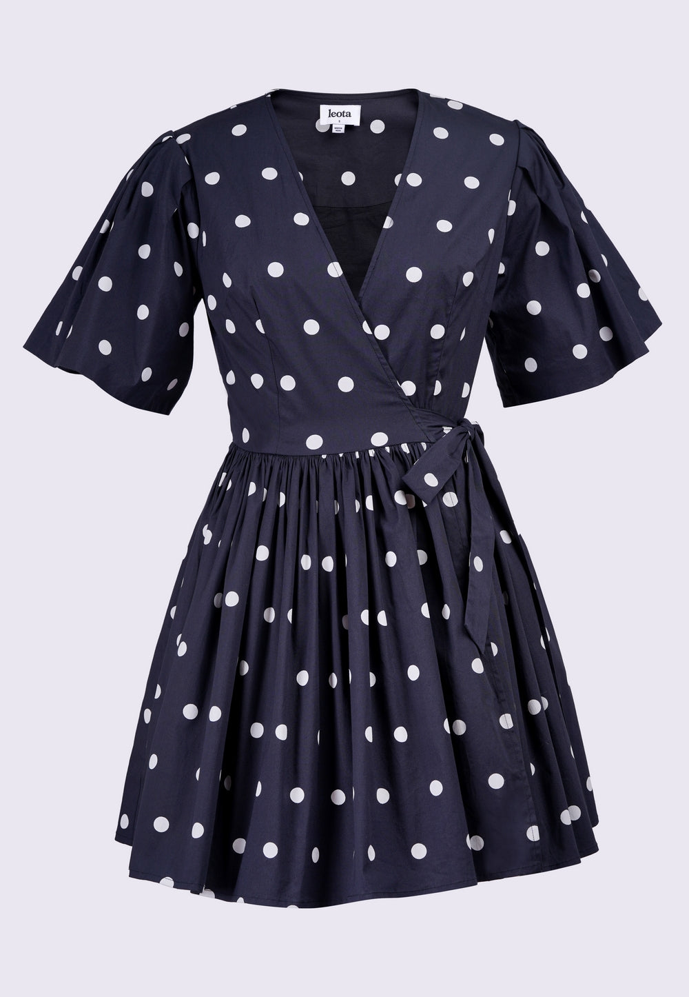 The Alena is a light and airy poplin wrap dress that brings drama to a classic. The dress features a gathered waist and voluminous mini skirt, dramatic elbow-length puff sleeves and a place for your essentials in hidden sideseam pockets. This is a classic wrap-around dress with an adjustable self-tie sash. The Alena offers our signature comfort, versatility, and ease of wear and care while delivering style that lasts.
