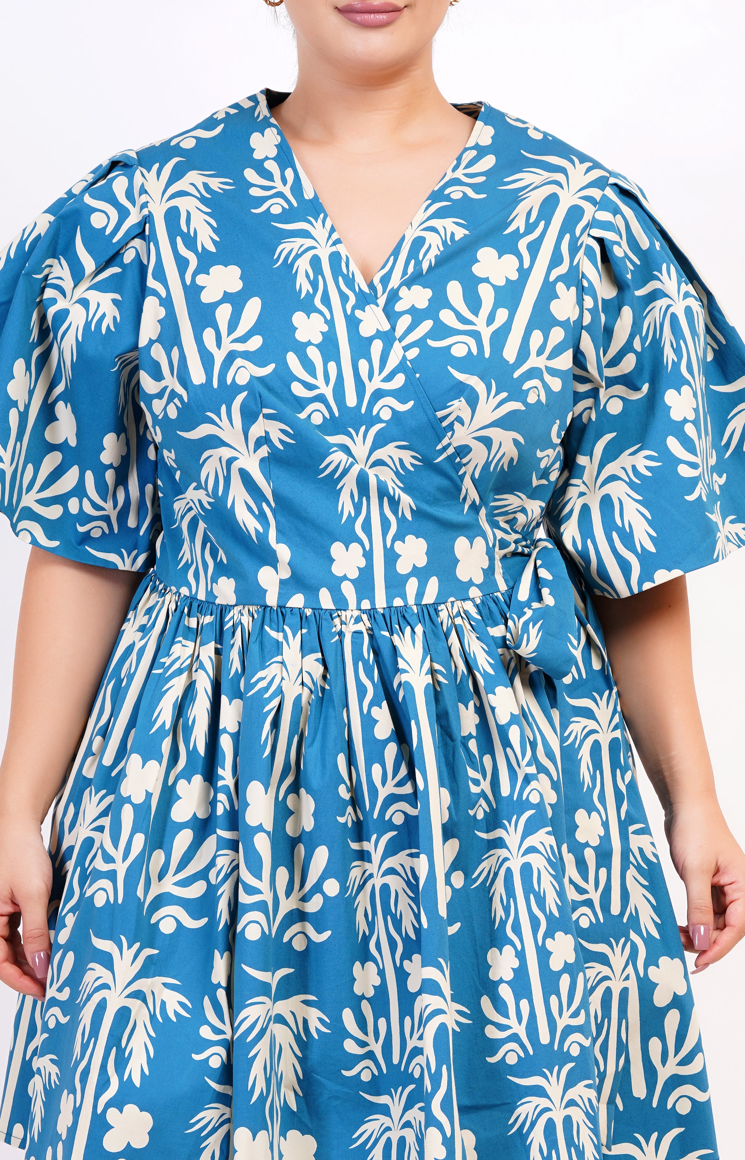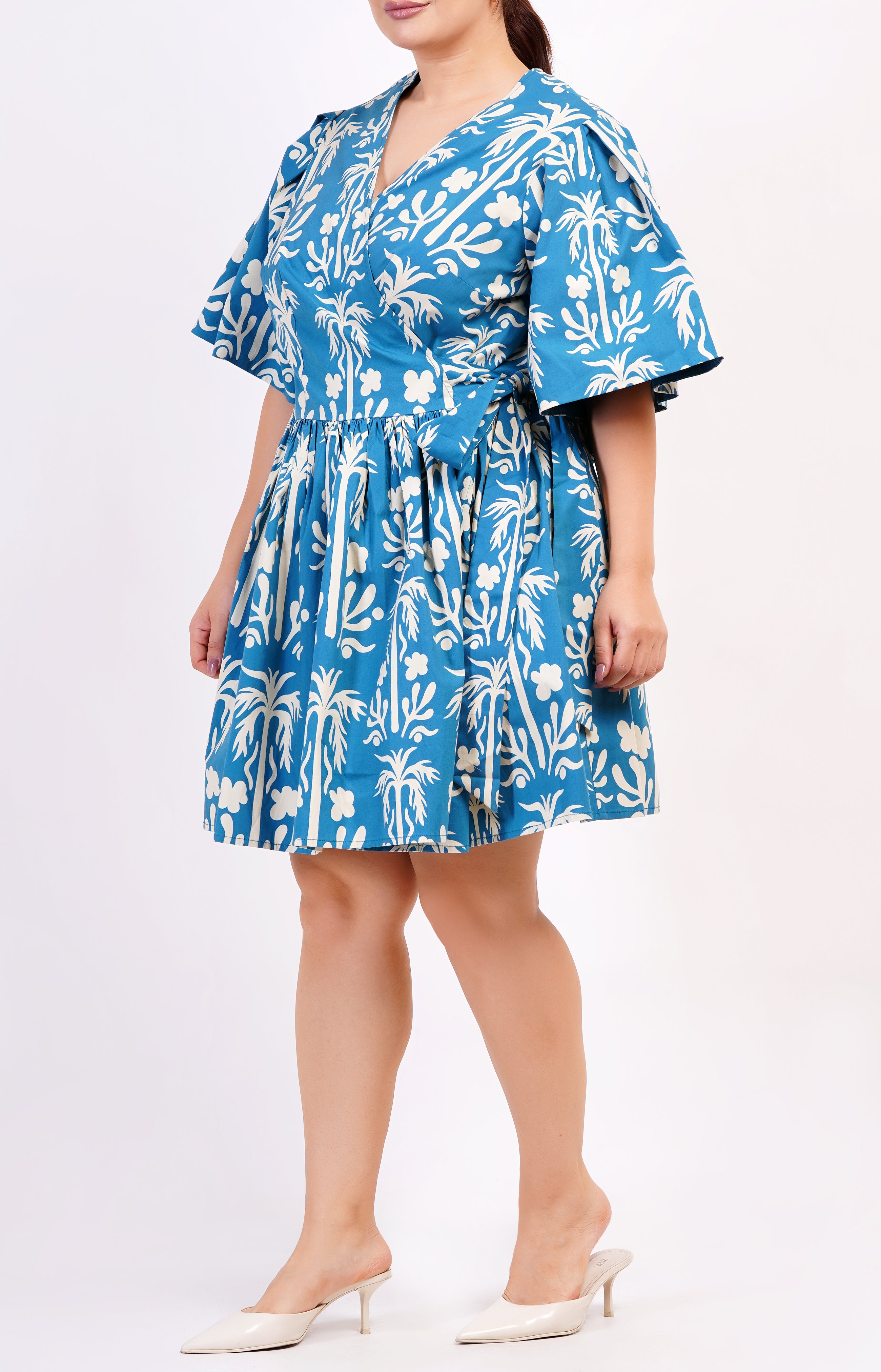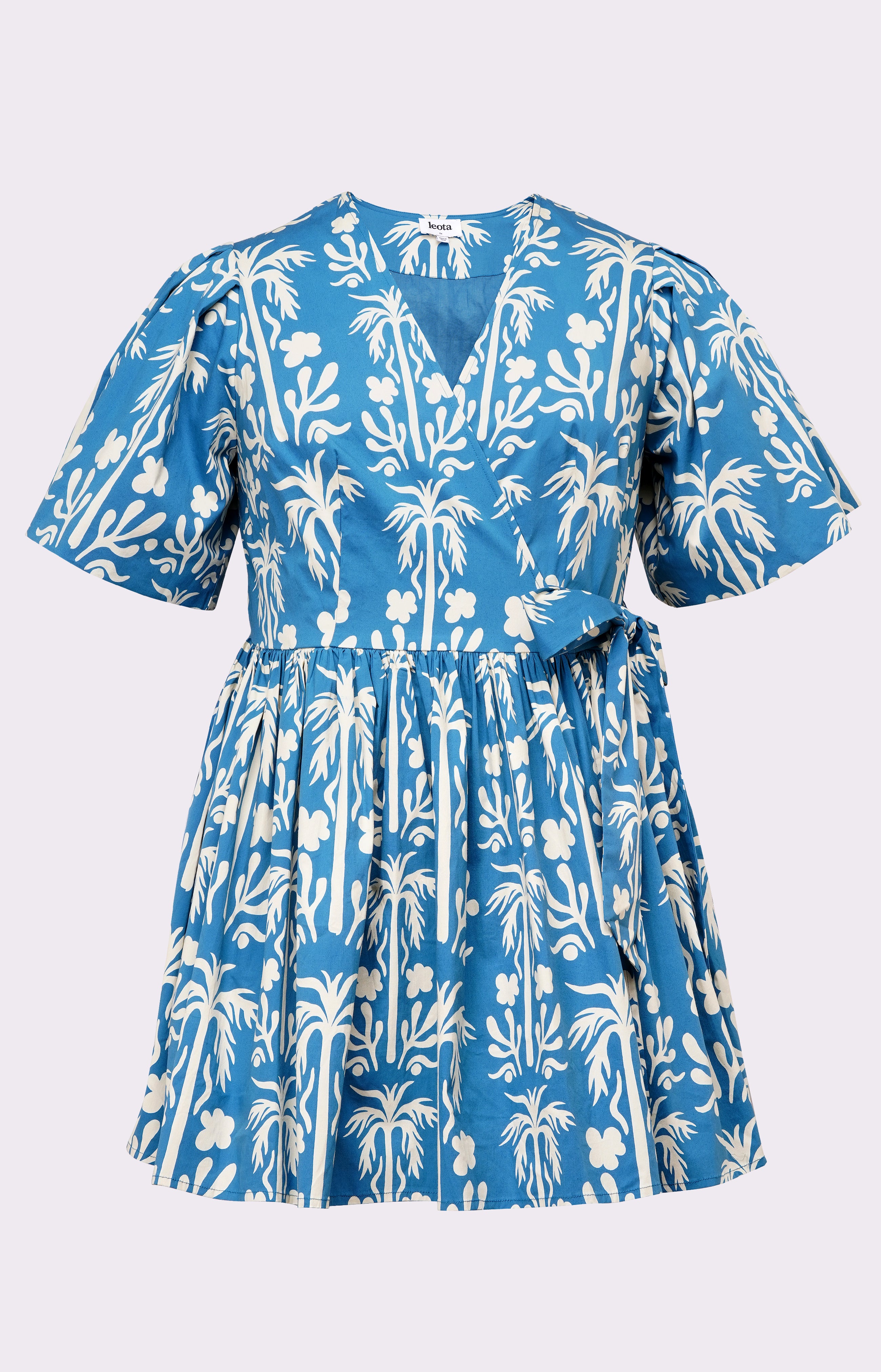 Alena Mini Wrap Dress Palm Fields Mykonos Blue