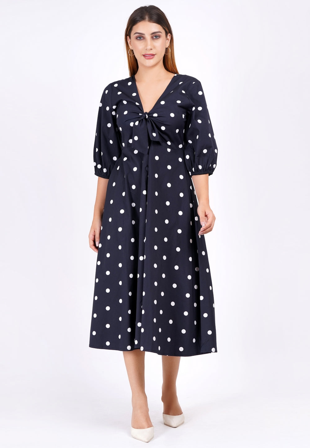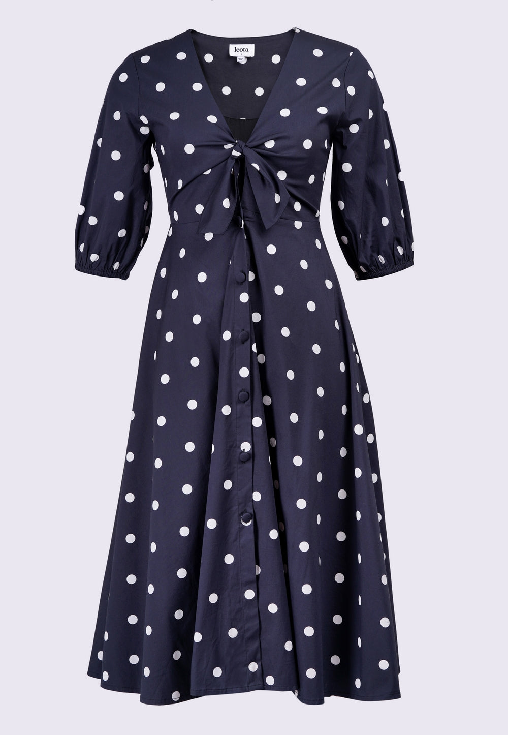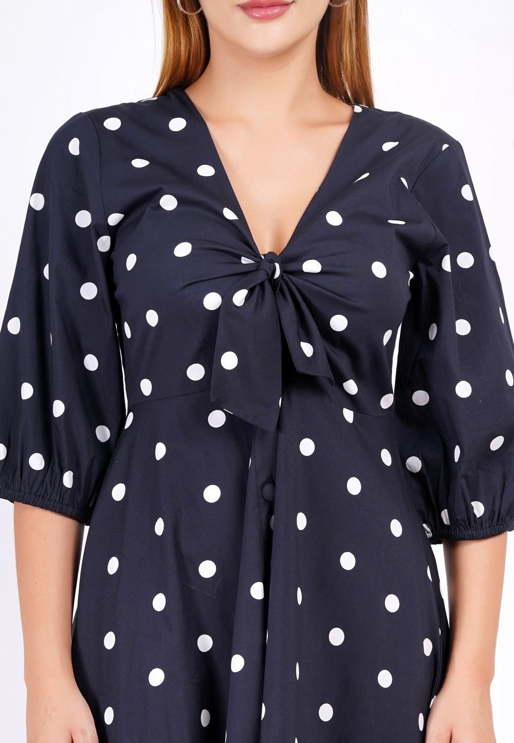 Adriana Tie-Front Midi Dress Small Polka Black White