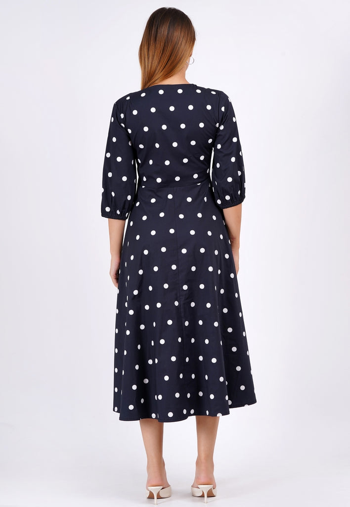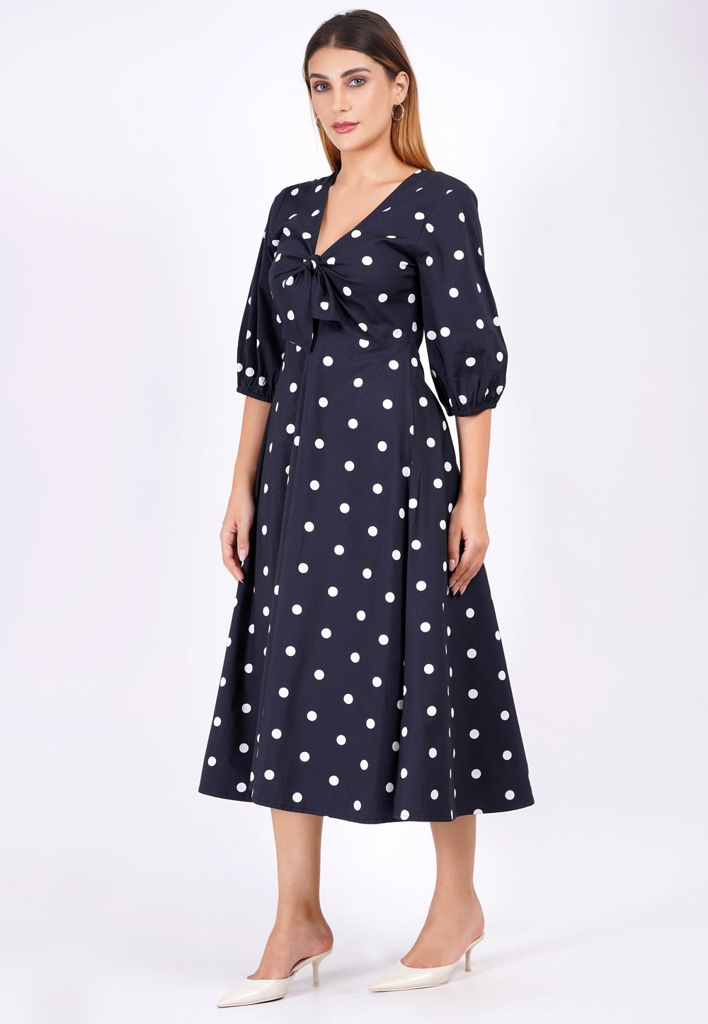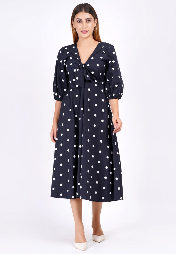 Adriana Tie-Front Midi Dress Small Polka Black White