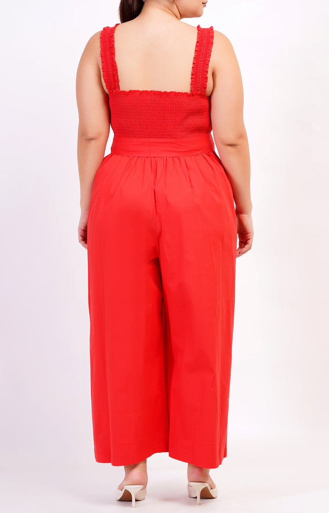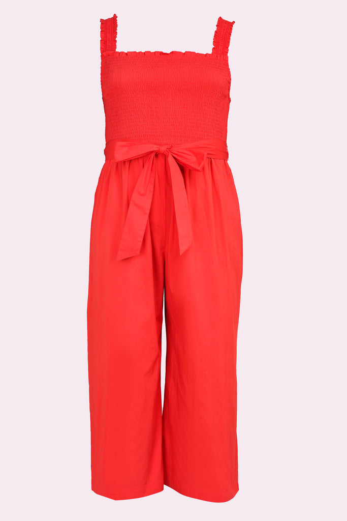 This retro-inspired jumpsuit features a comfortably smocked bodice, wide smocked straps with charming ruffle details, and a removable self-tie sash. Square neck and back are on-trend (and bra-friendly!) Full flowy wide legs in a perfect above the ankle length, with generous pockets for your essentials. The Janet offers our signature comfort, versatility, and ease of wear and care while delivering style that lasts.