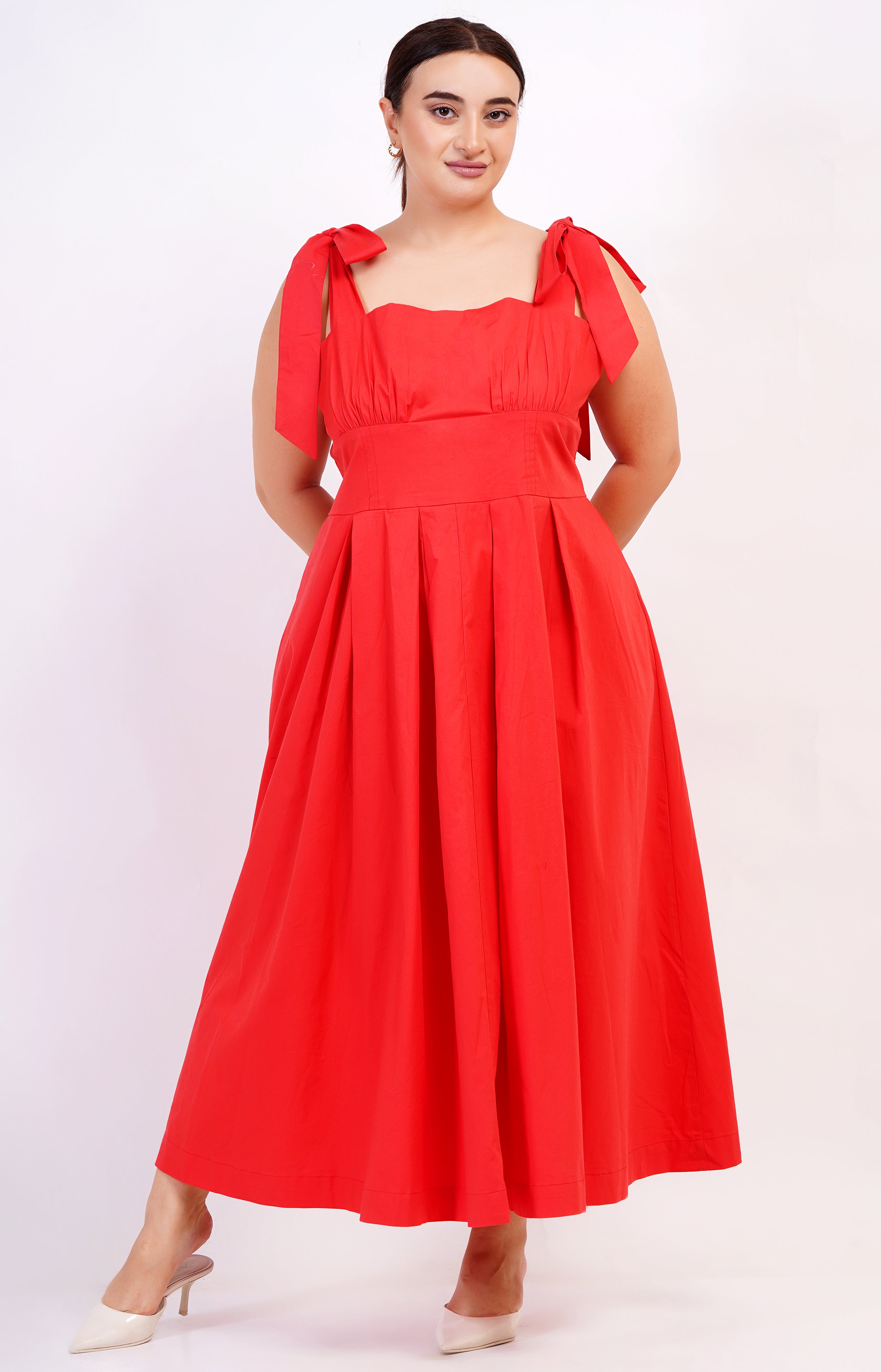 A classic Americana silhouette with self-tie ribbon bows at the shoulders, tailored front bodice, and knife-pleated full midi skirt with in-seam pockets. The smocked back bodice makes for an easy fit. The square neck and back are on-trend (and bra-friendly!). The Penelope offers our signature comfort, versatility, and ease of wear and care while delivering style that lasts.