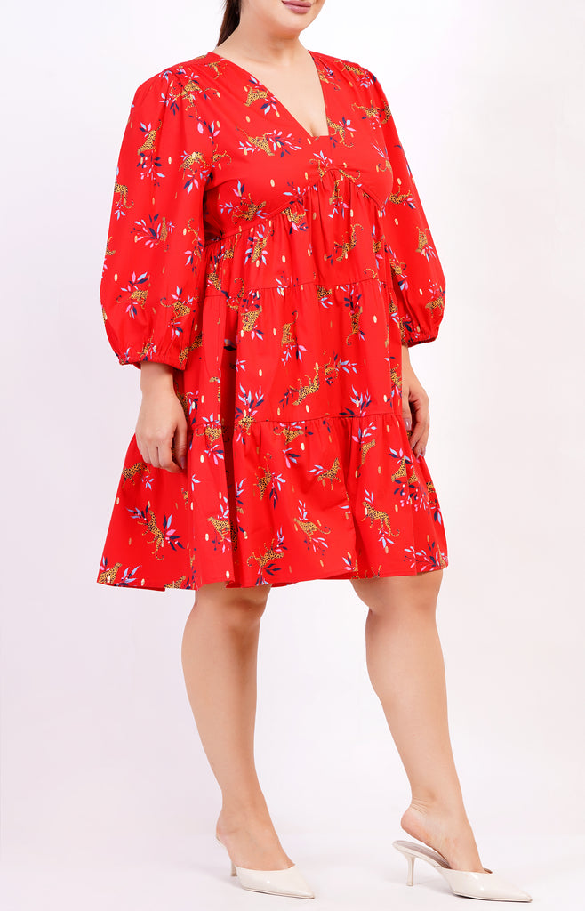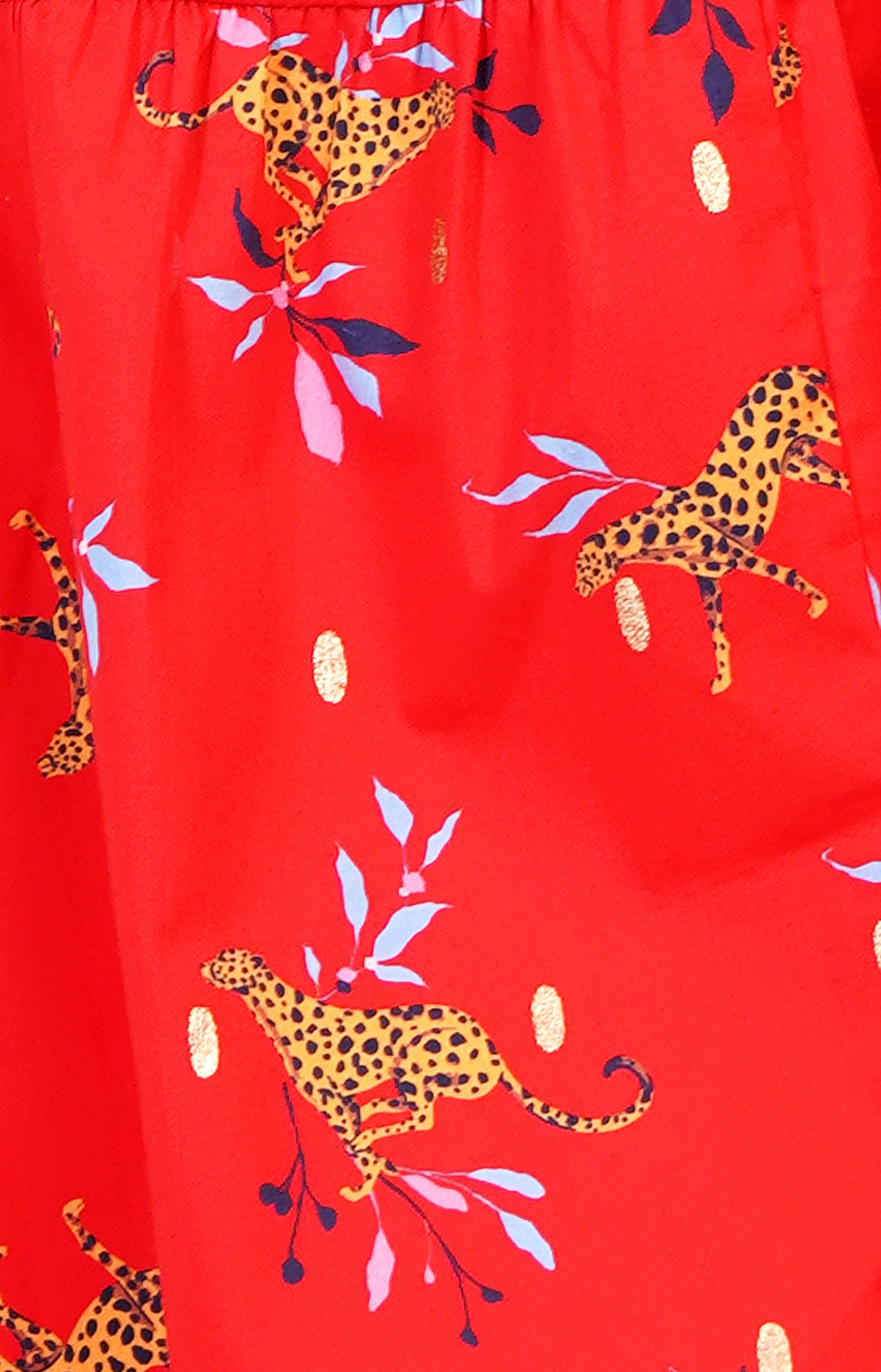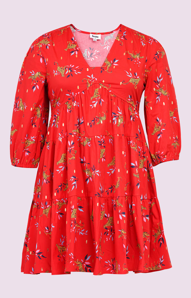 Zariah Empire Waist Mini Dress Lucky Cheetah Poppy Red
