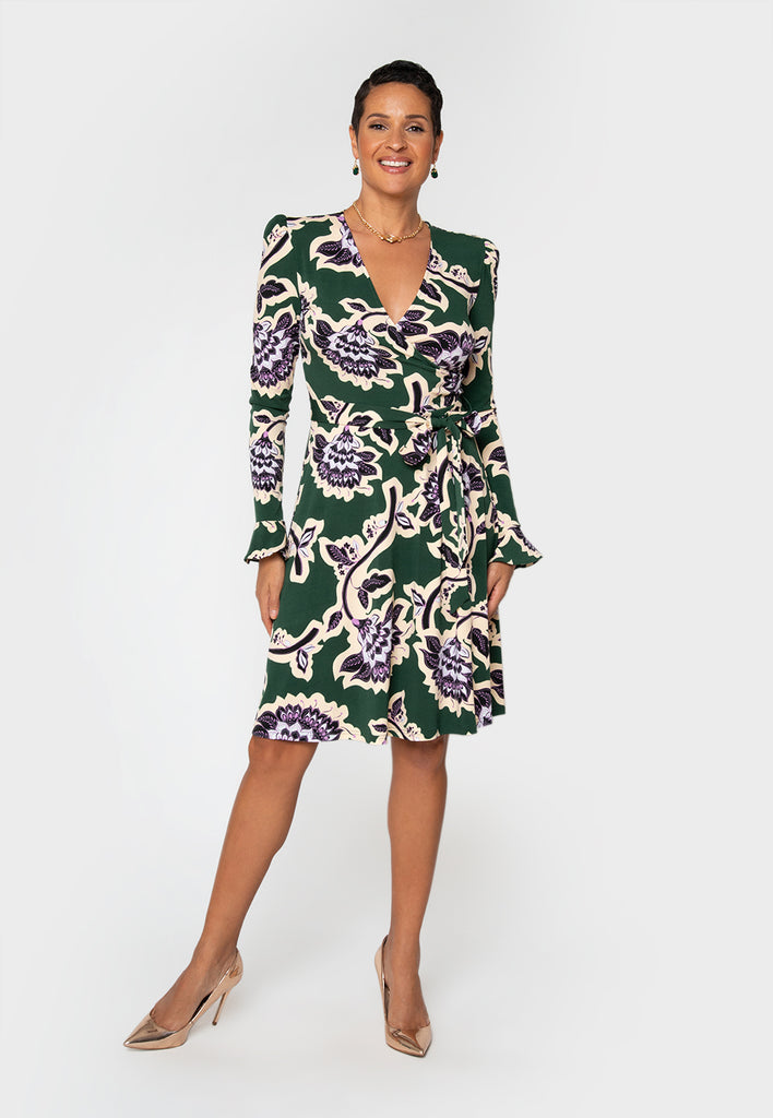 Alena Mini Wrap Dress Crown Floral Flame Scarlet