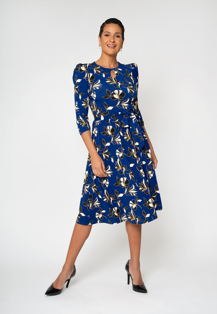 Ivanna A-Line Smocked Midi Dress Solid Mazarine Blue