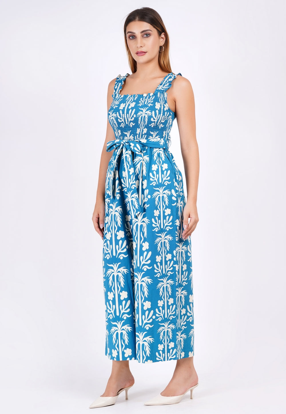 Janet Cropped Jumpsuit Palm Fields Mykonos Blue