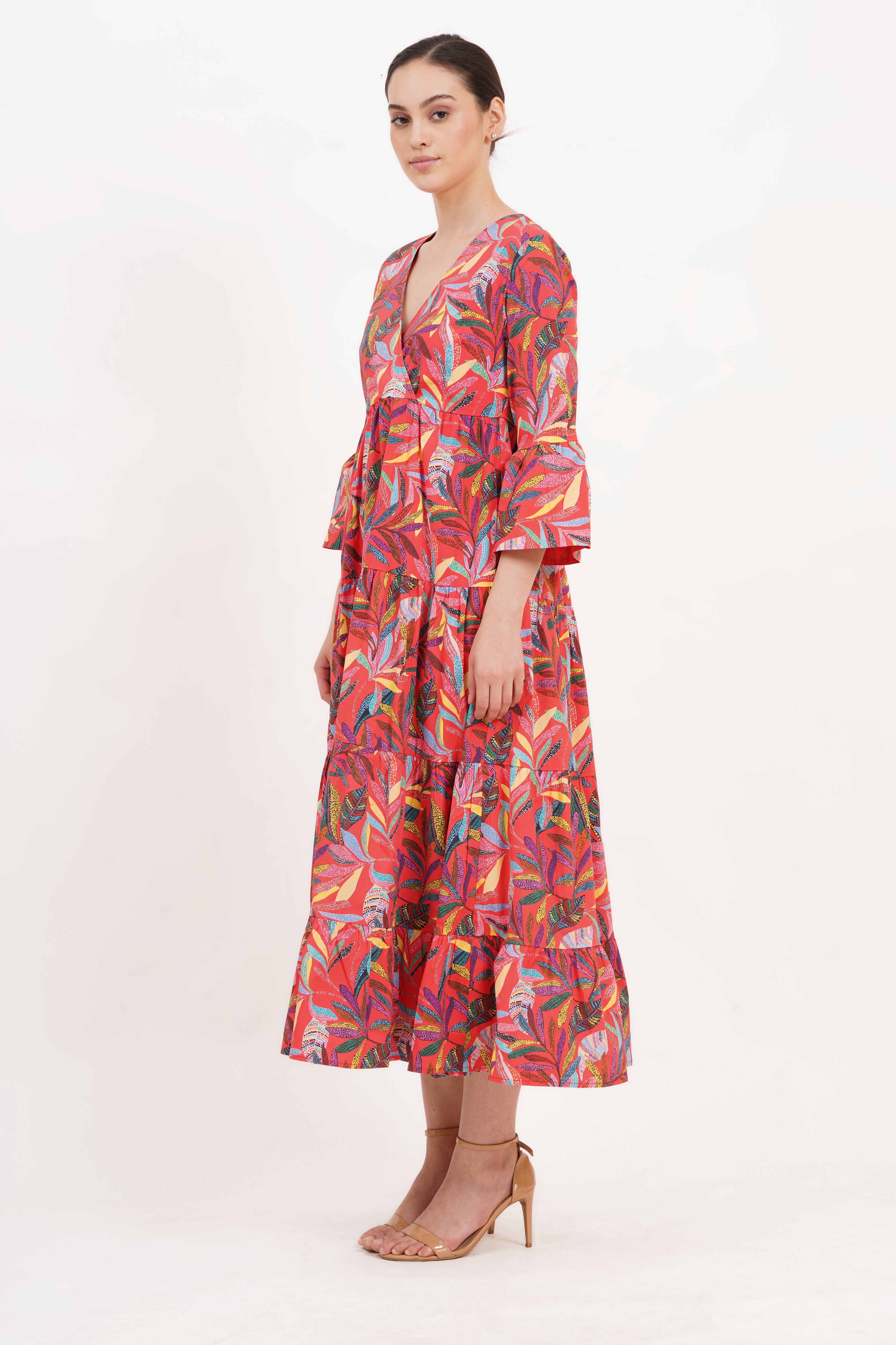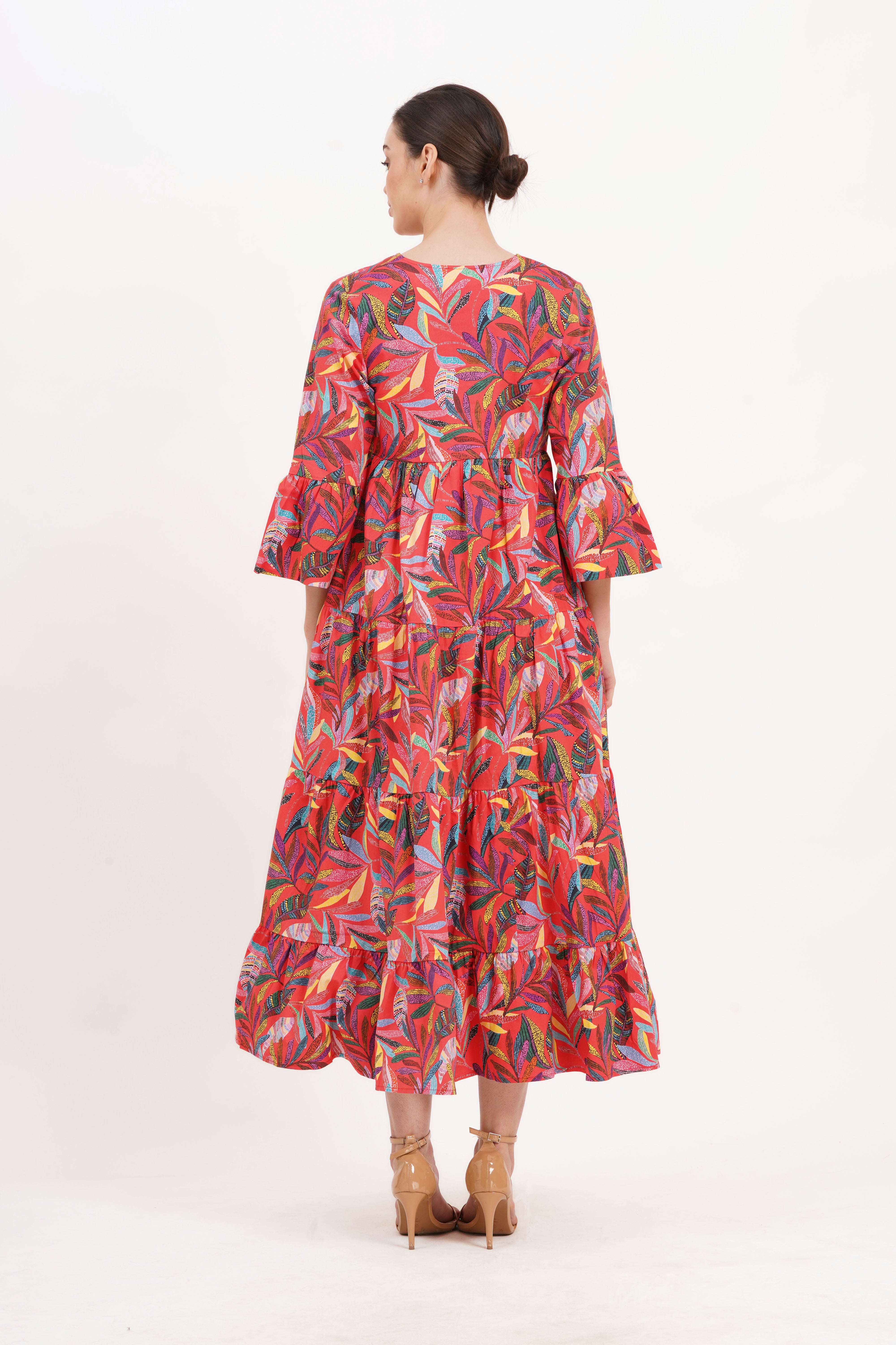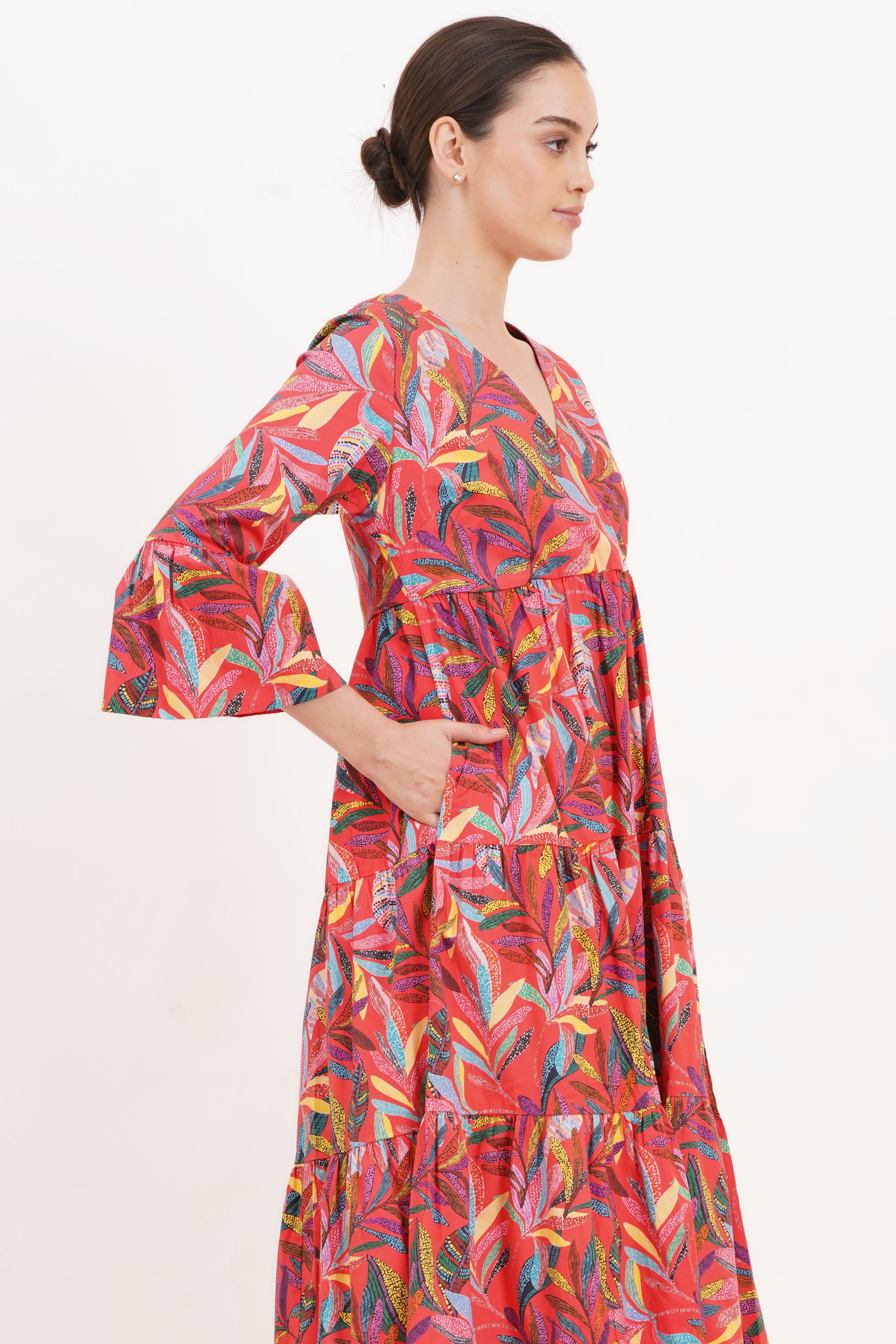 Sariah Poplin Maxi Dress Palm Foliage Poppy Red