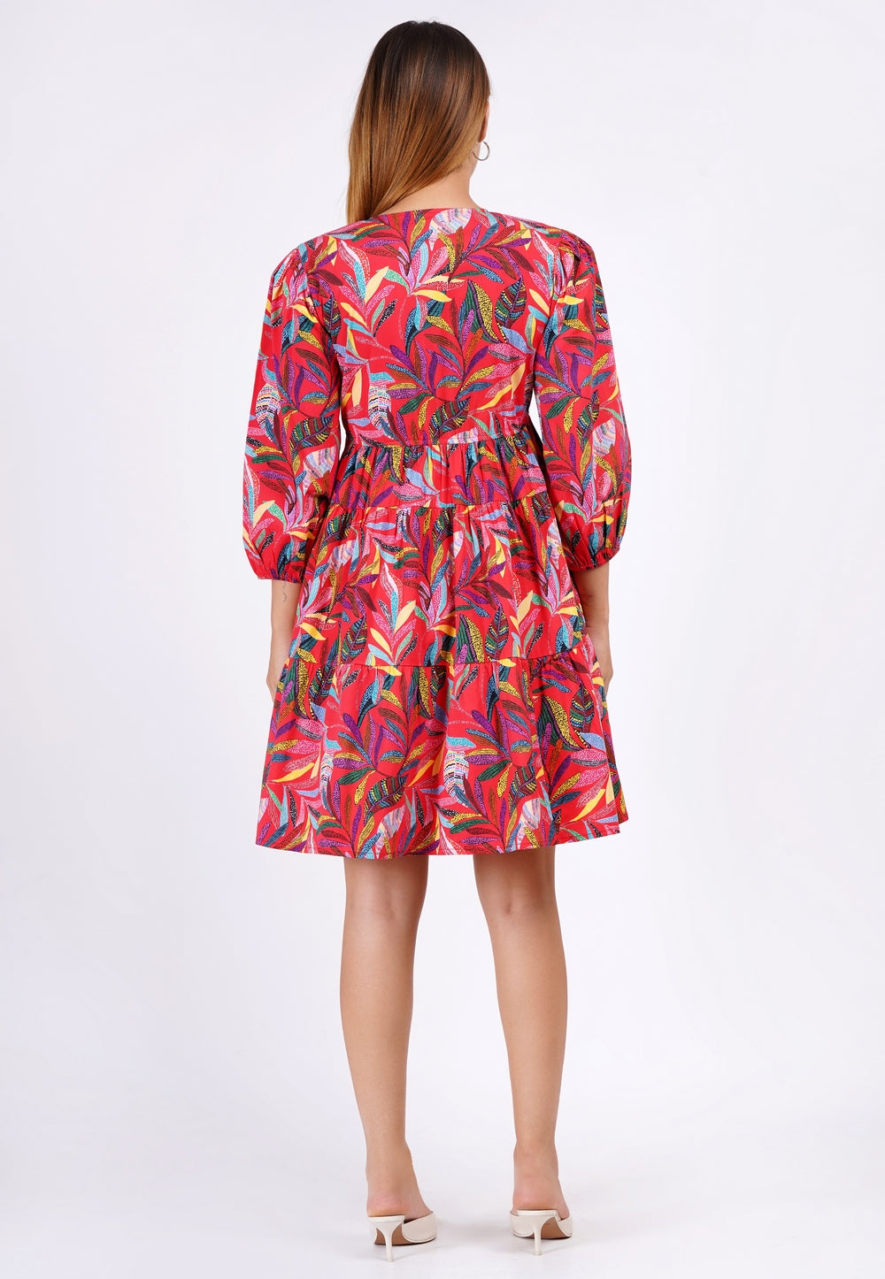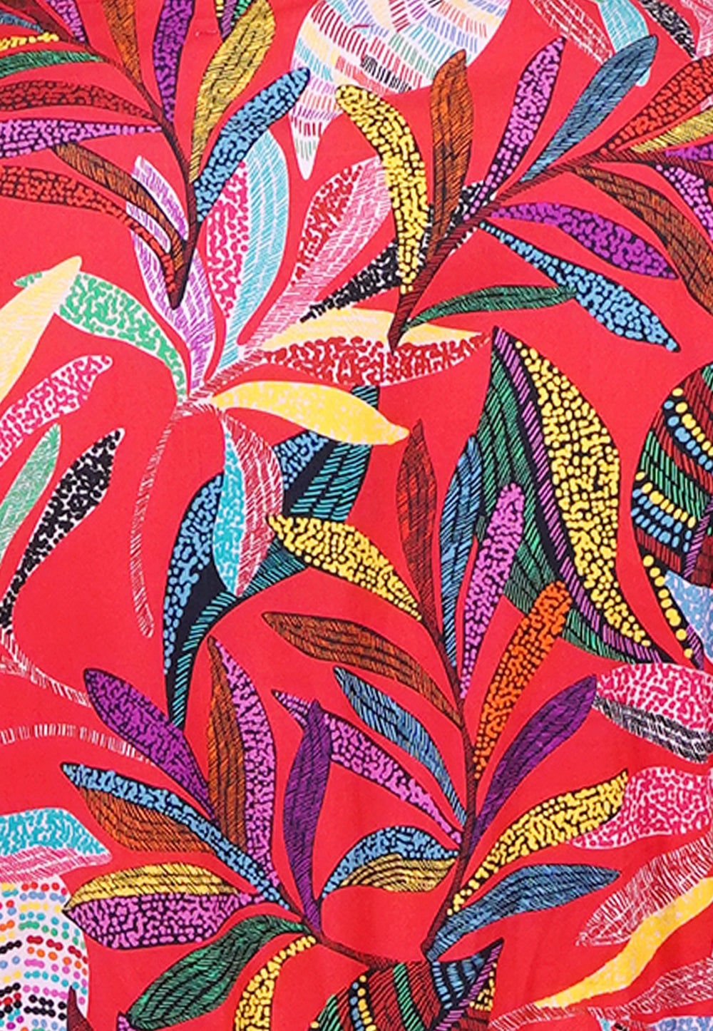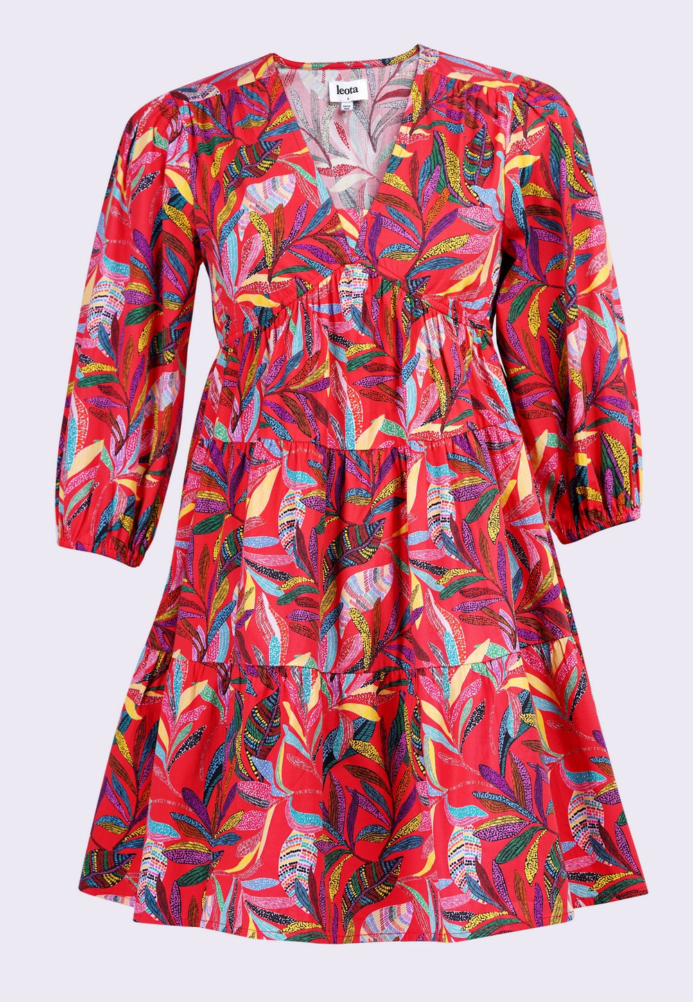 Zariah Empire Waist Mini Dress Palm Foliage Poppy Red