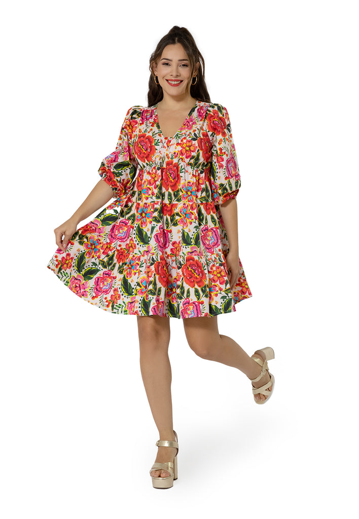 Zariah Empire Waist Mini Dress Crown Floral Flame Scarlet