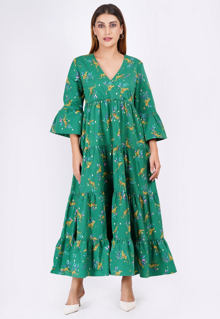 Sariah Poplin Maxi Dress Lucky Cheetah Verdant Green