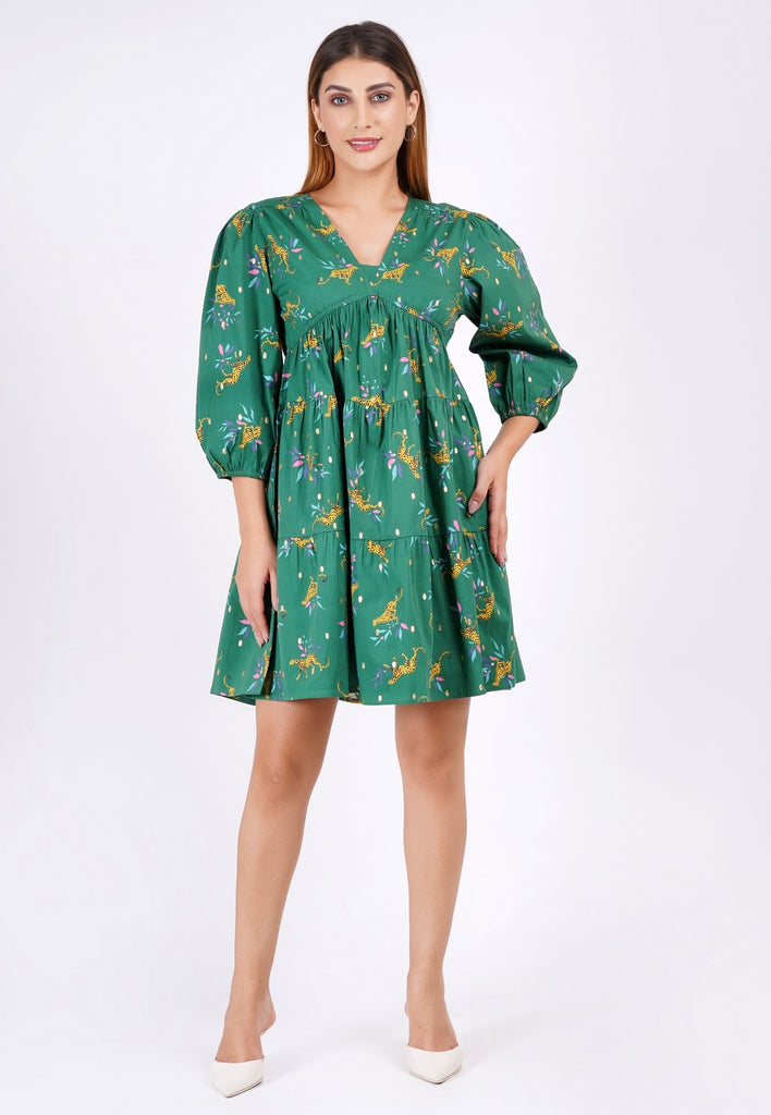 Zariah Empire Waist Mini Dress Lucky Cheetah Verdant Green