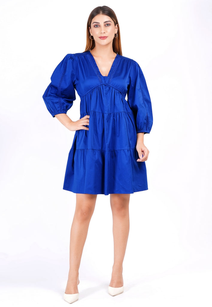 Zariah Empire Waist Mini Dress in Solid Mazarine Blue