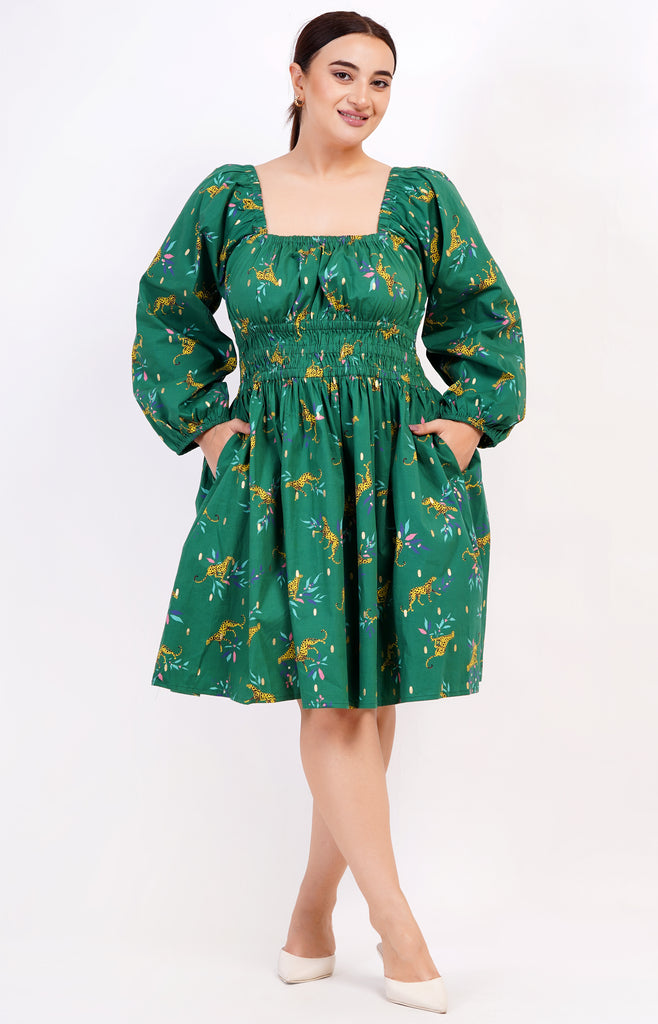 Genevieve Square Neck Mini Dress Lucky Cheetah Verdant Green