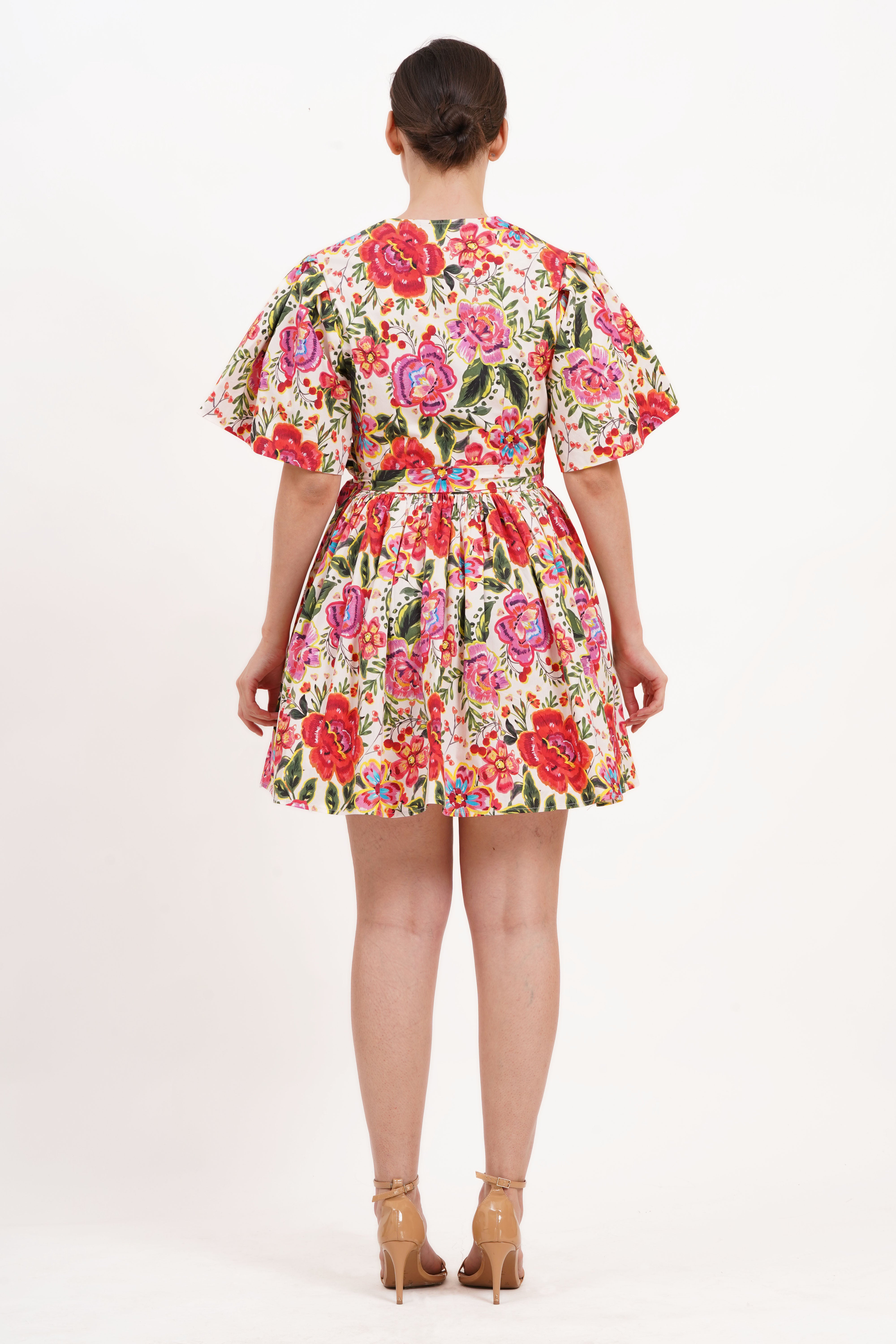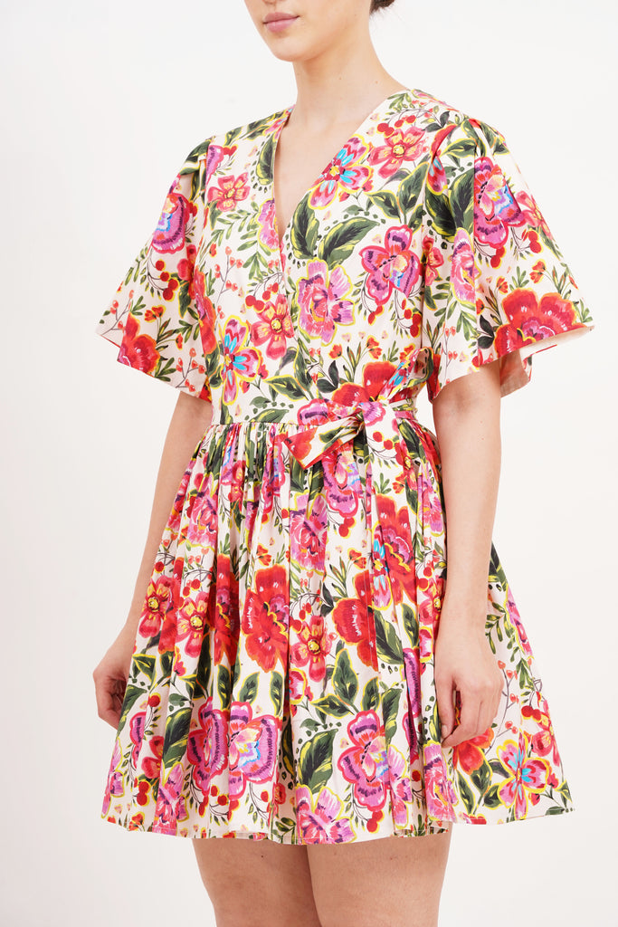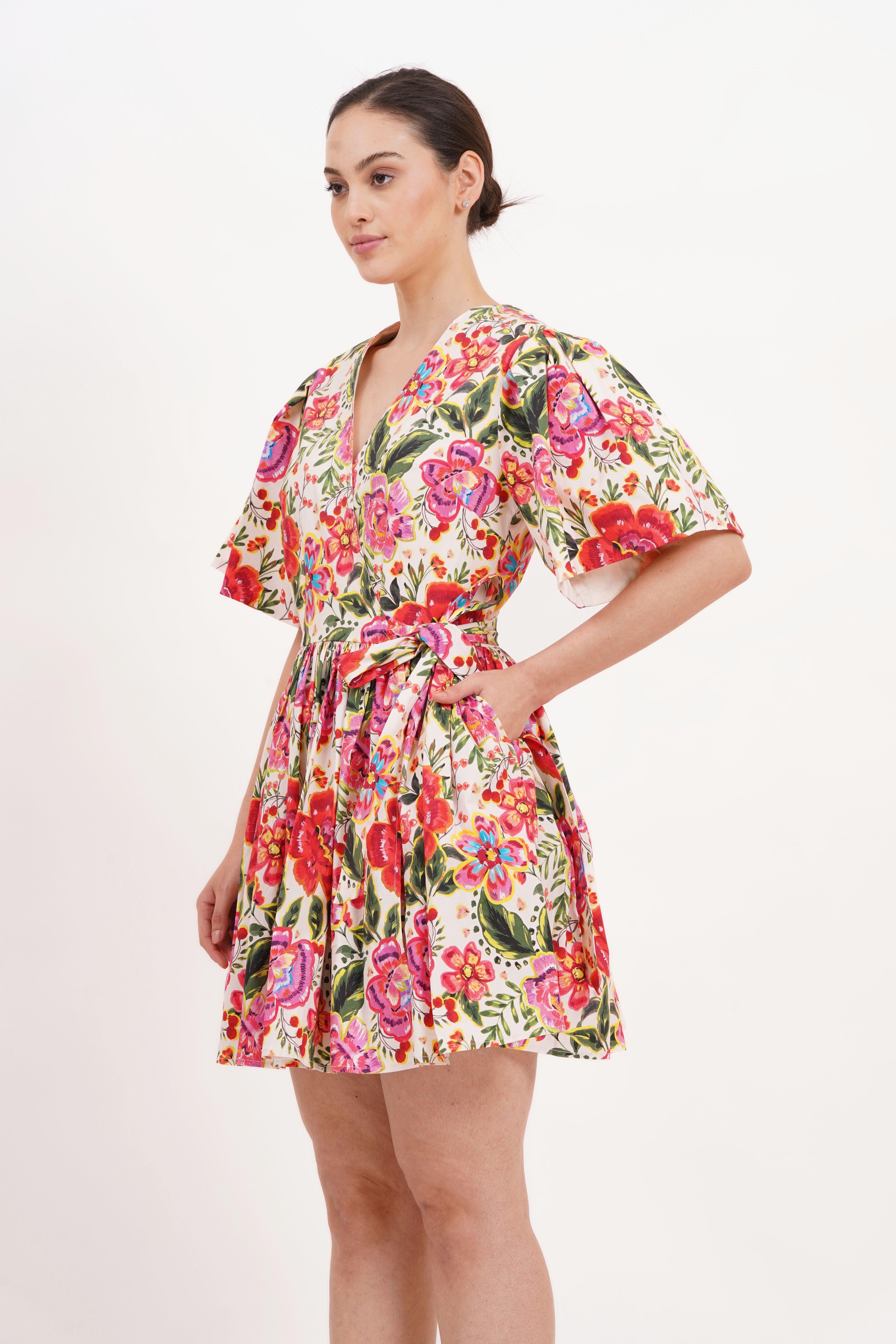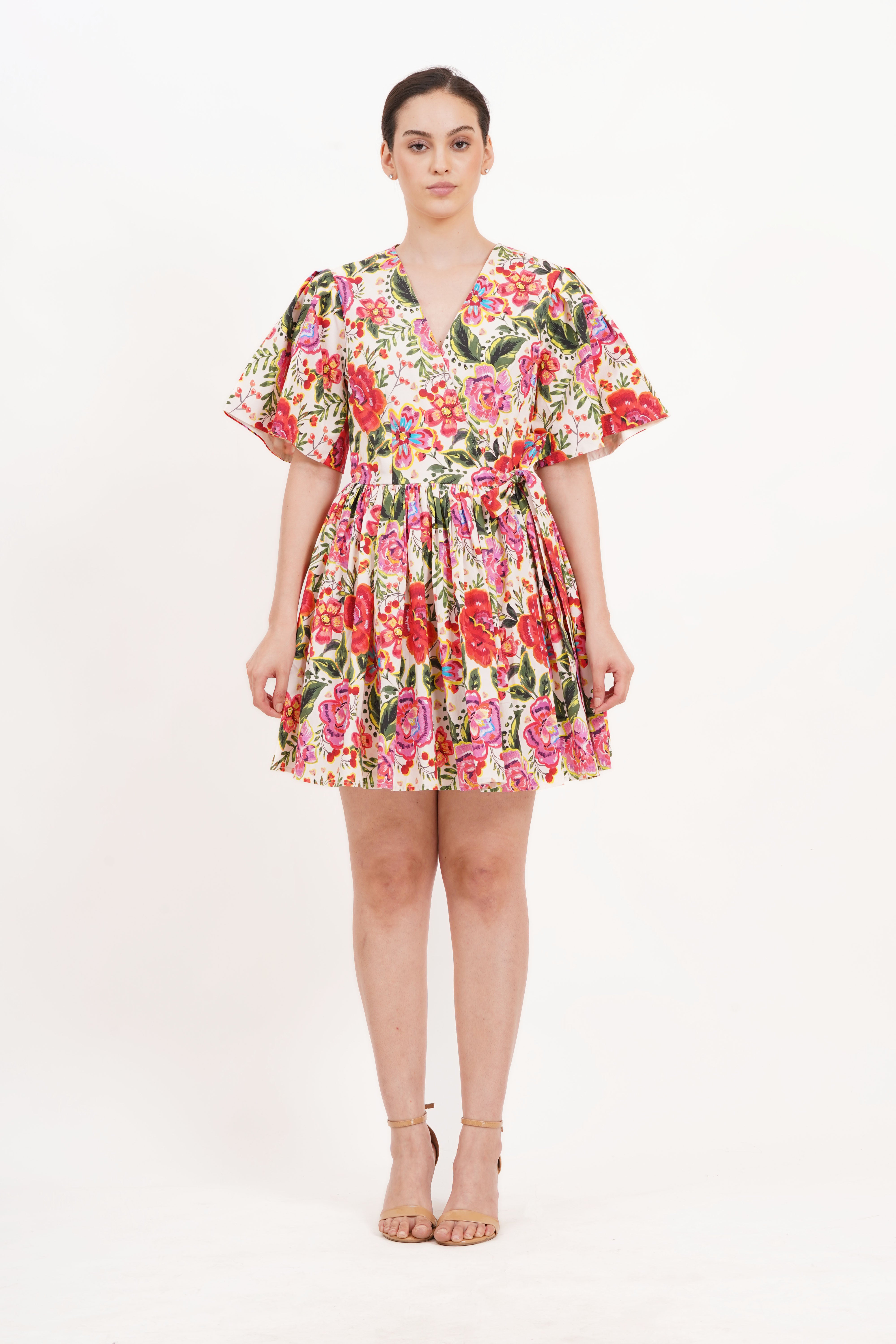 Alena Mini Wrap Dress Crown Floral Flame Scarlet