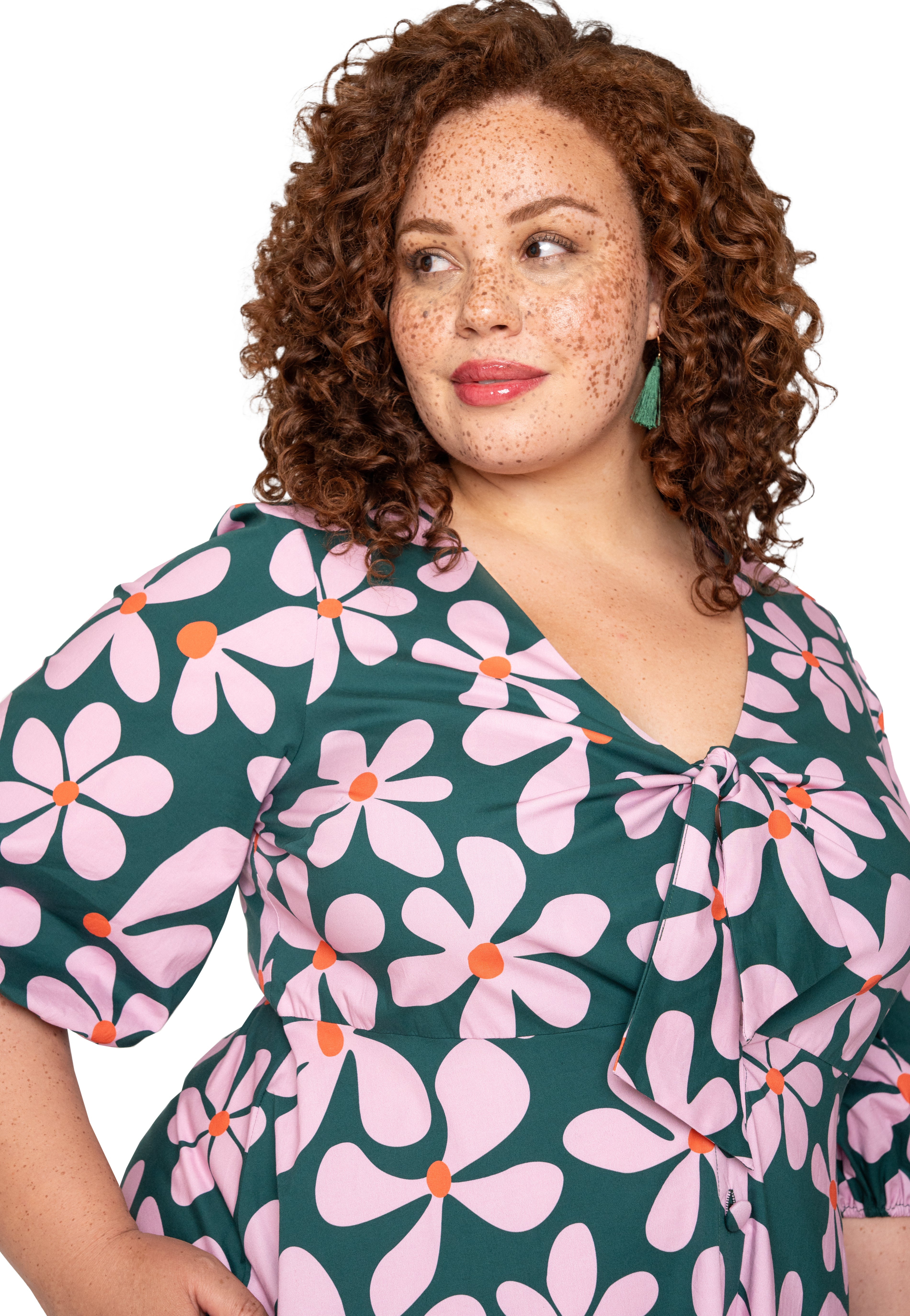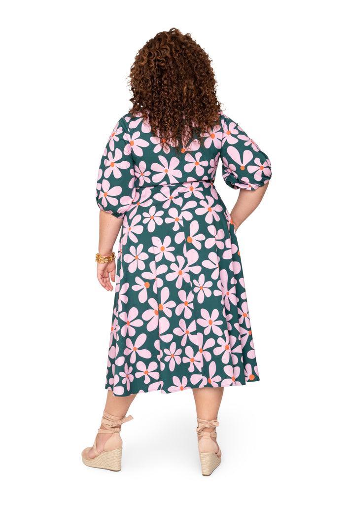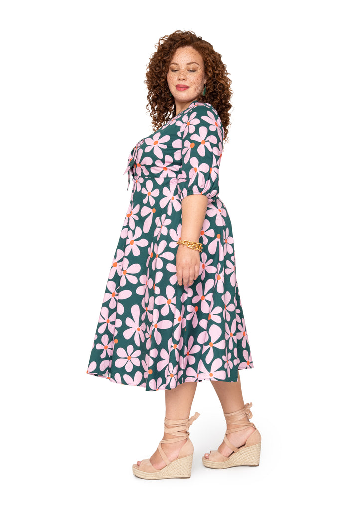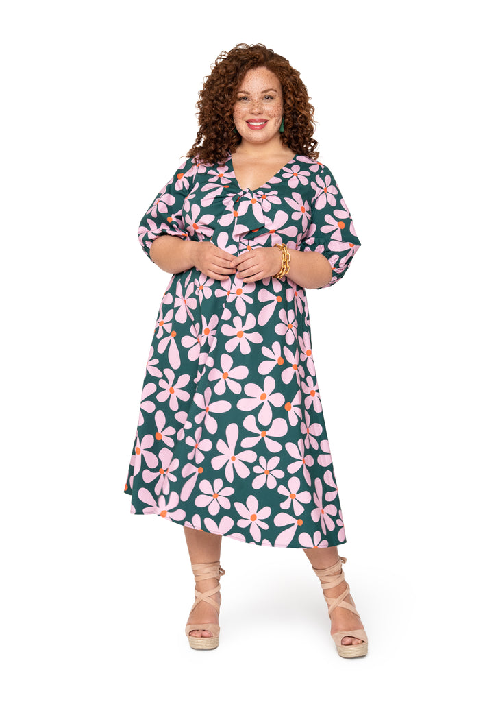 Adriana Tie-Front Midi Dress Dancing Daisies Evergreen
