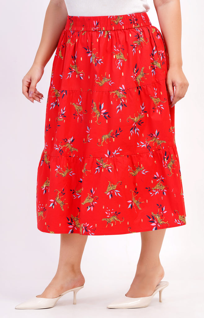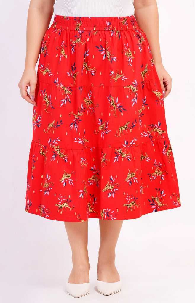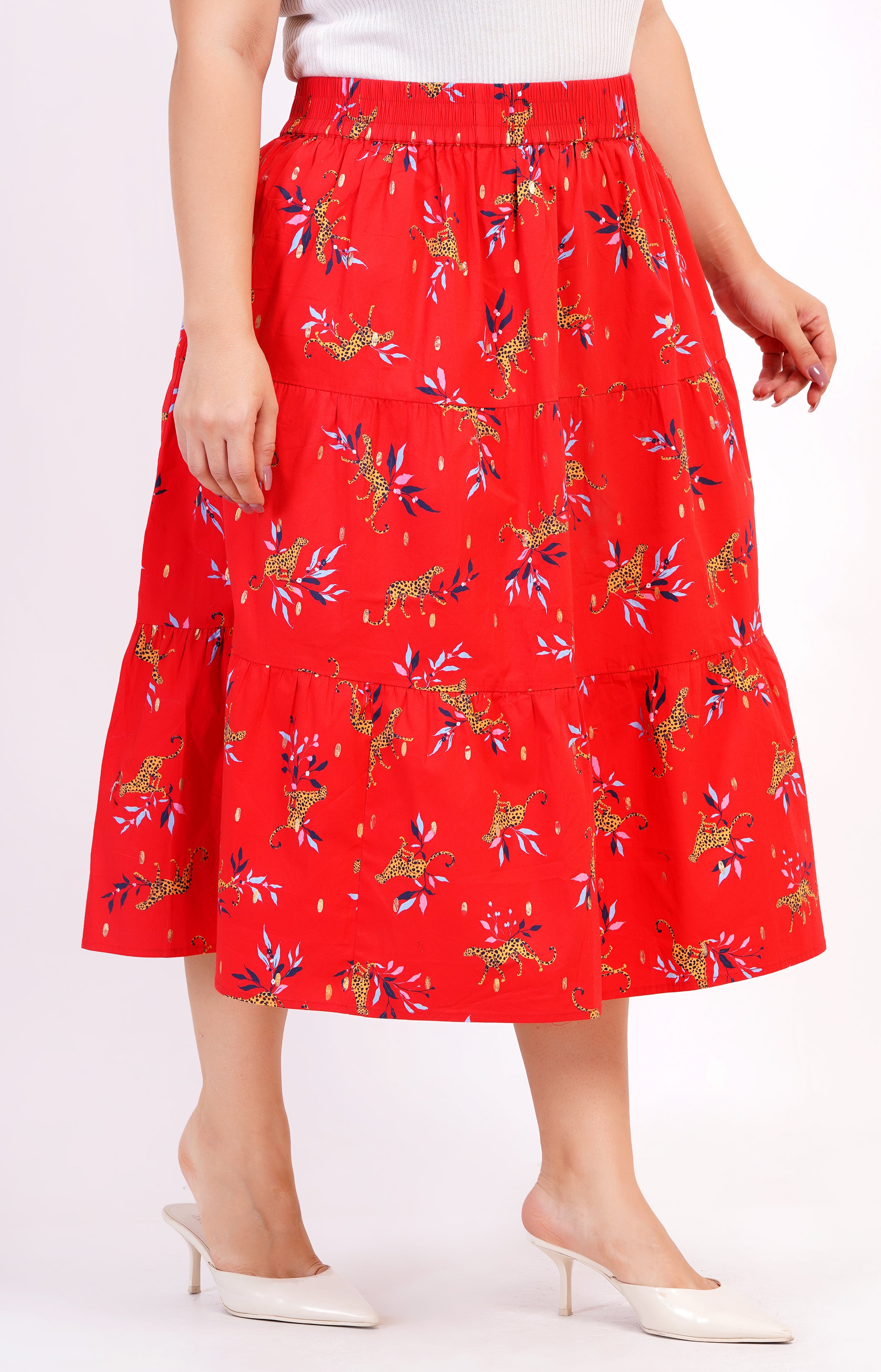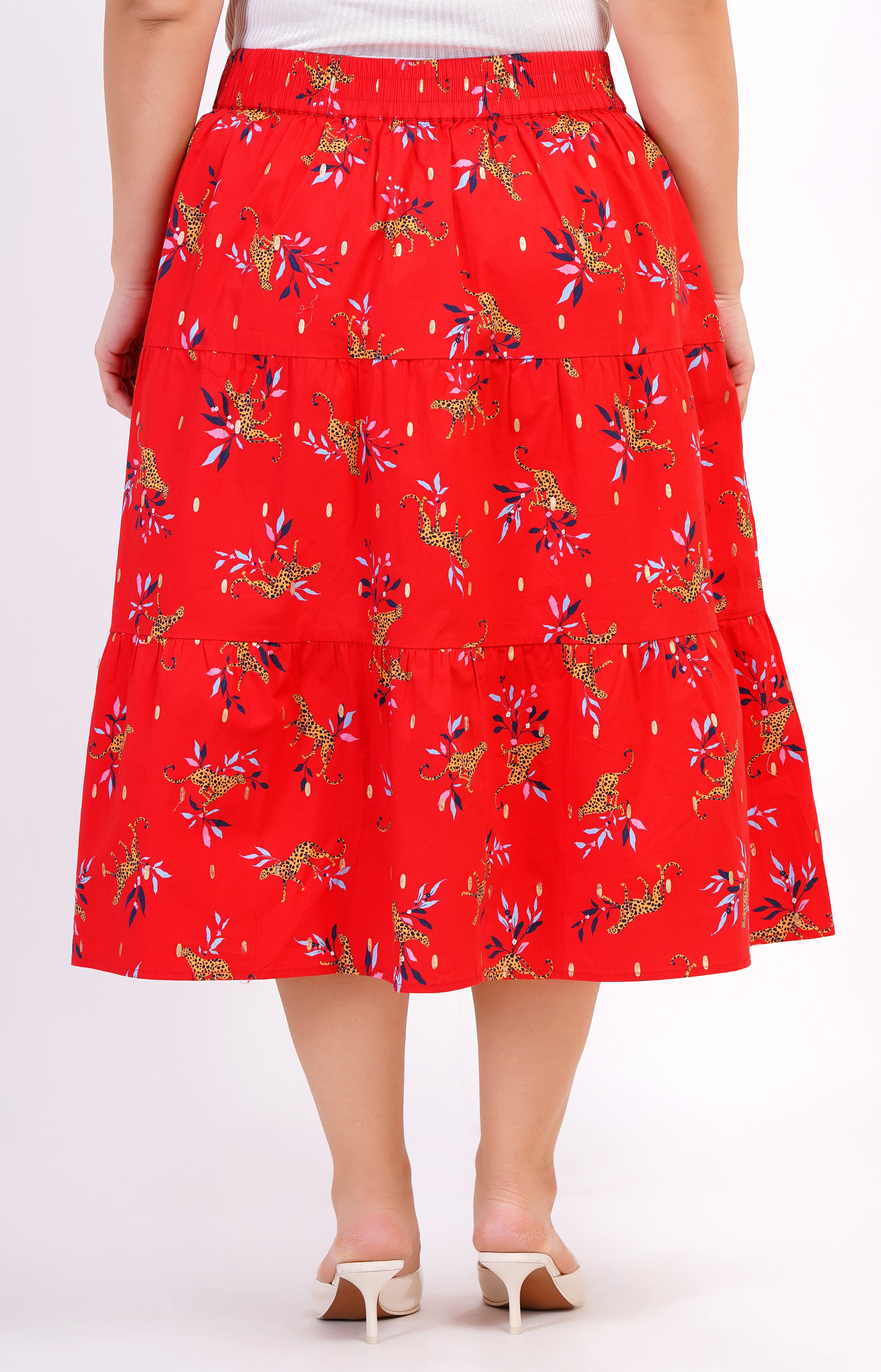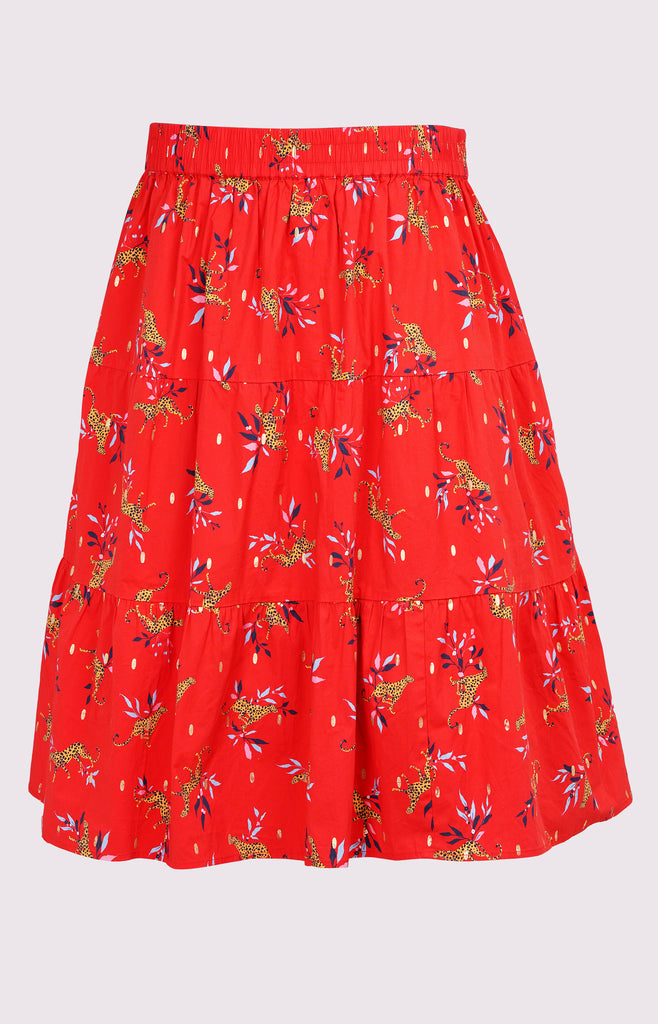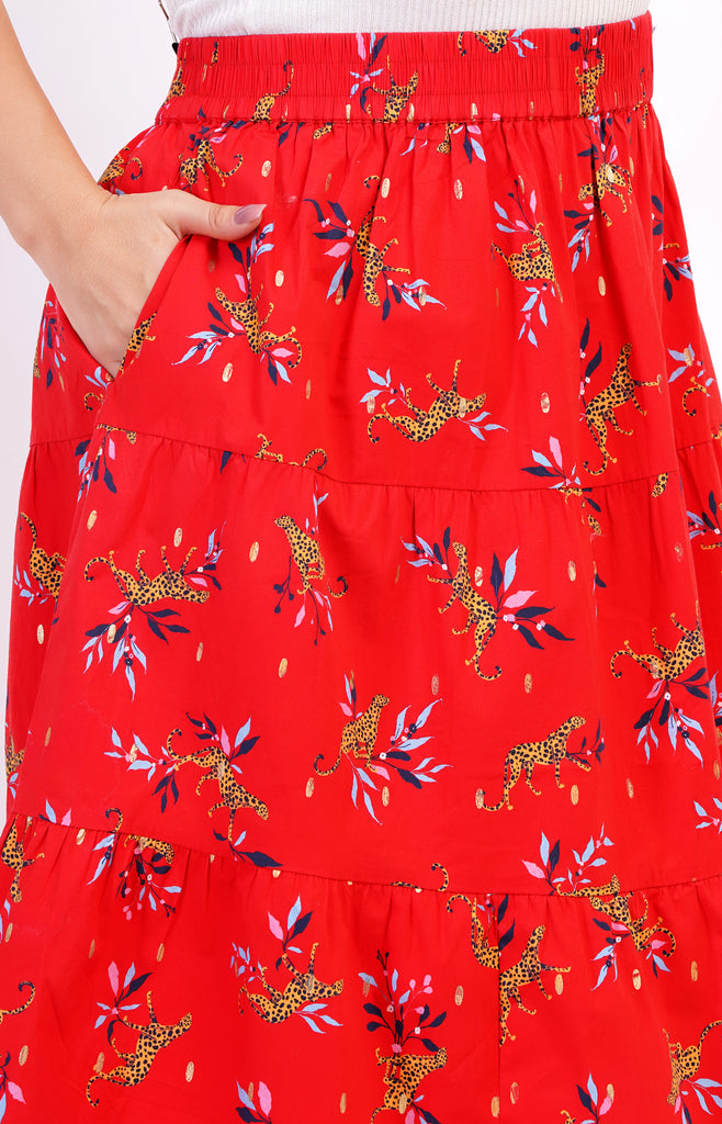 Evelyn Tiered Midi Skirt Lucky Cheetah Poppy Red