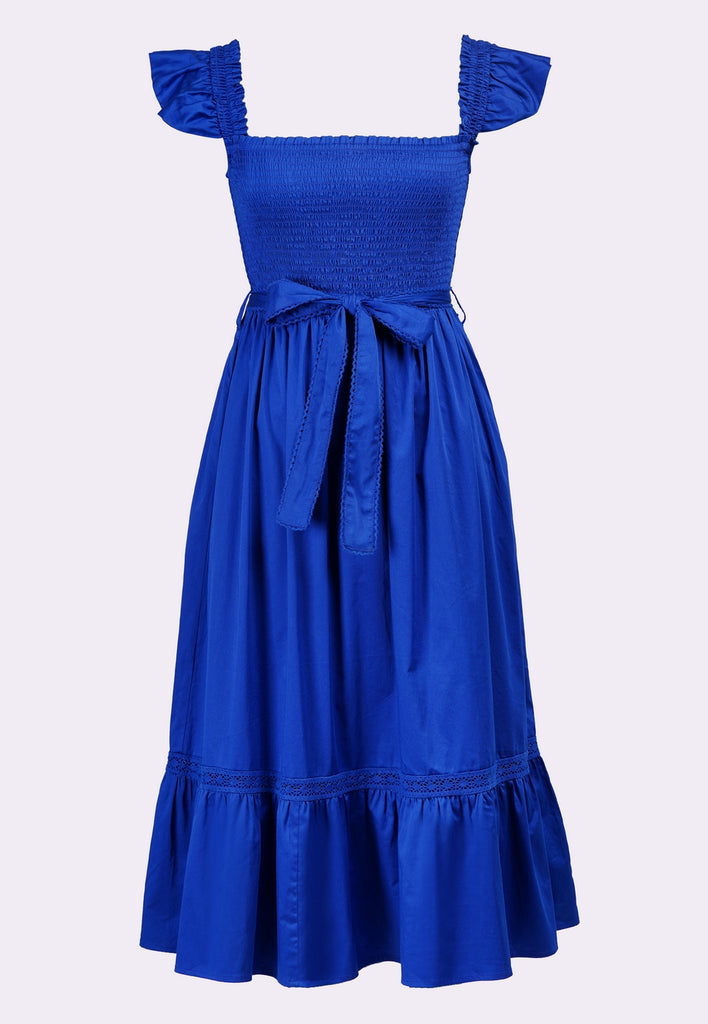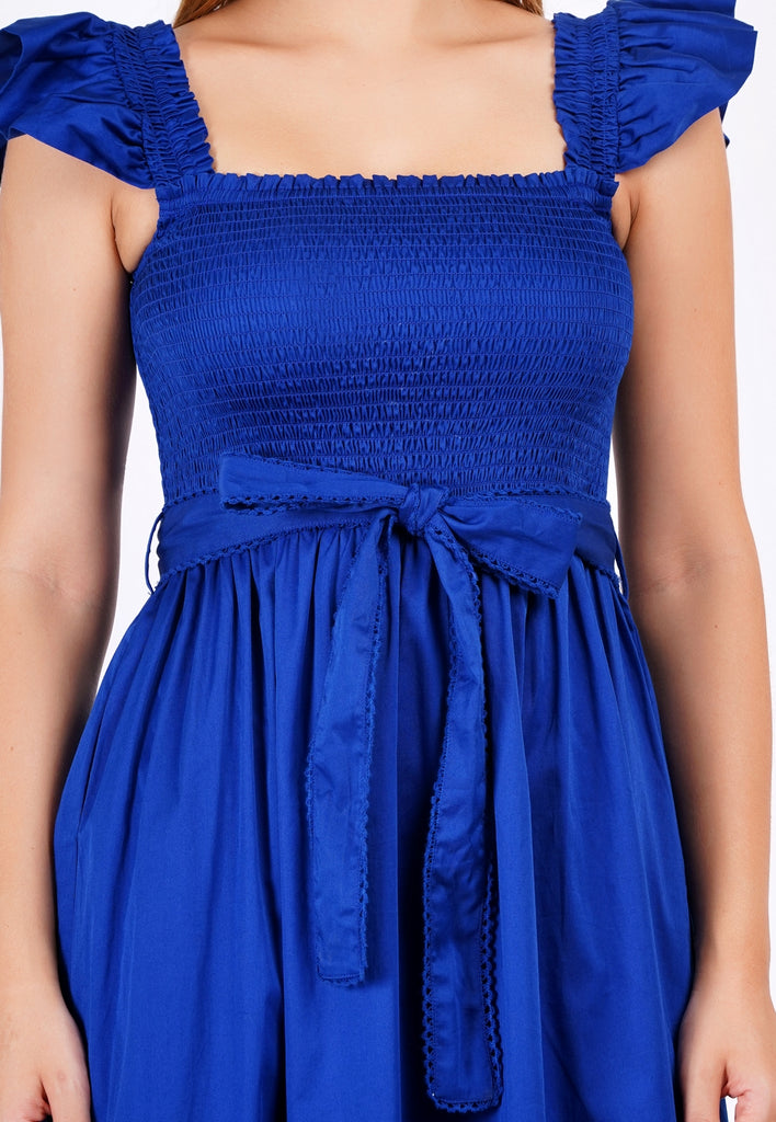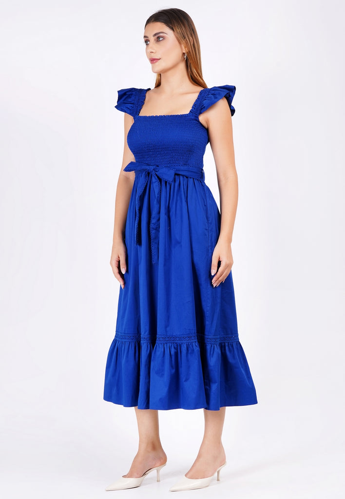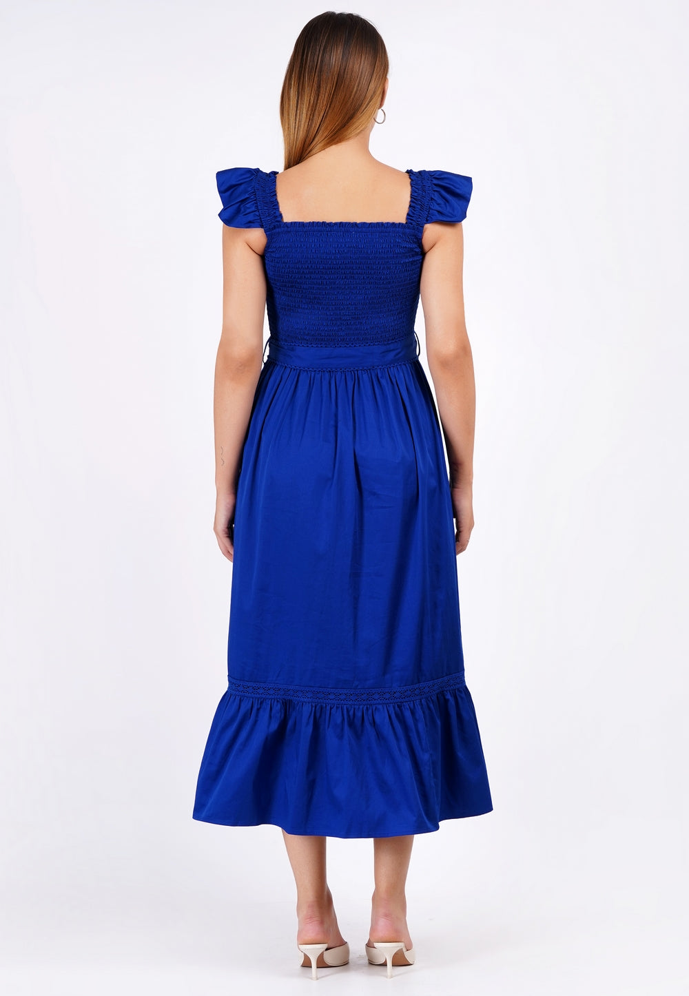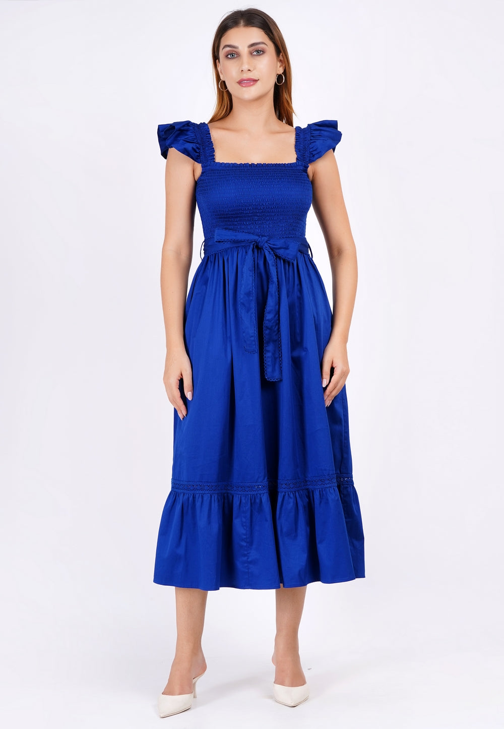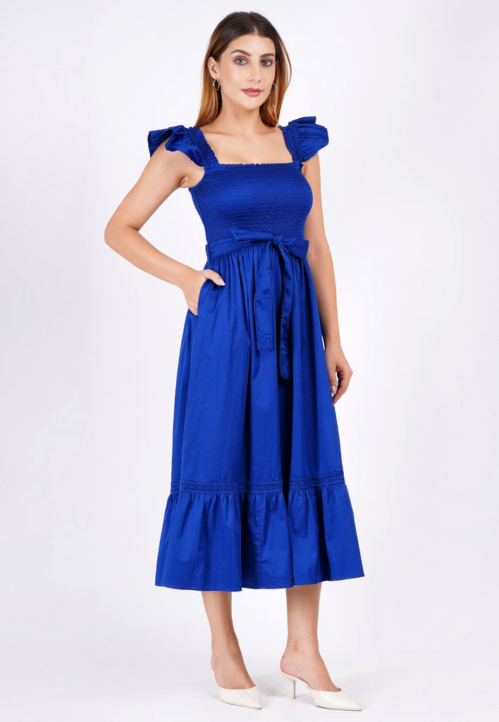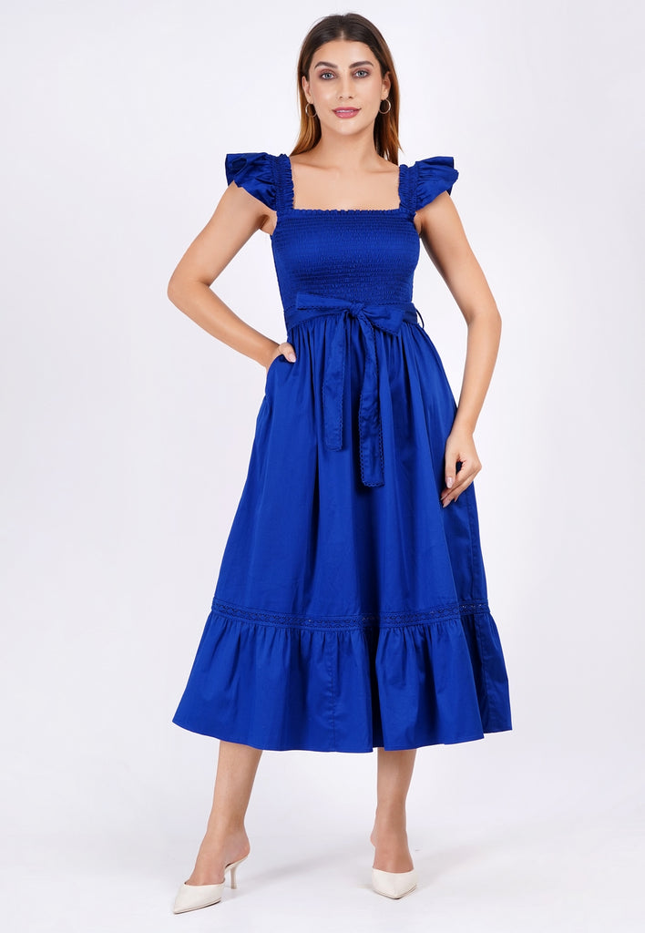 Ivanna A-Line Smocked Midi Dress Solid Mazarine Blue