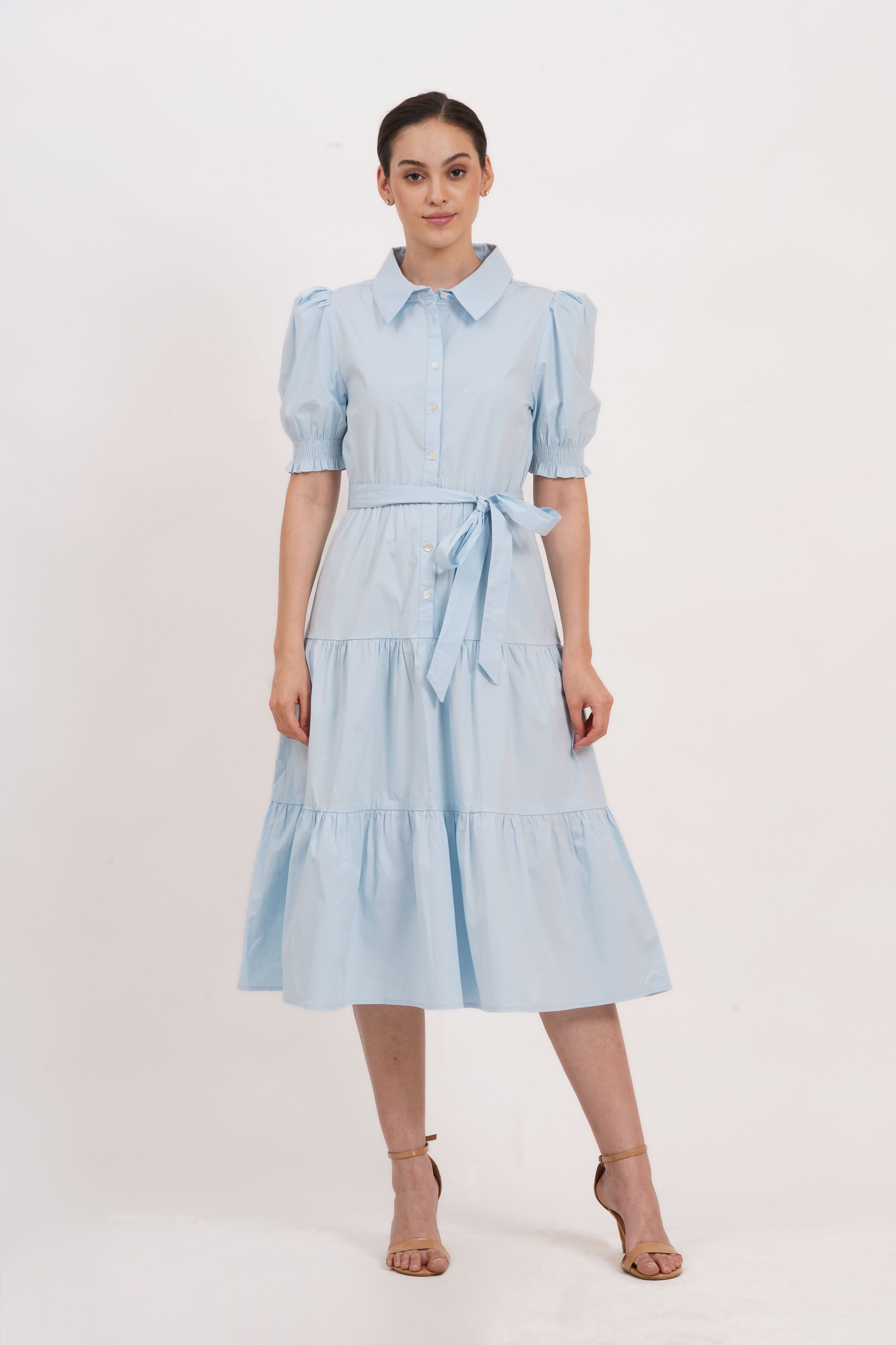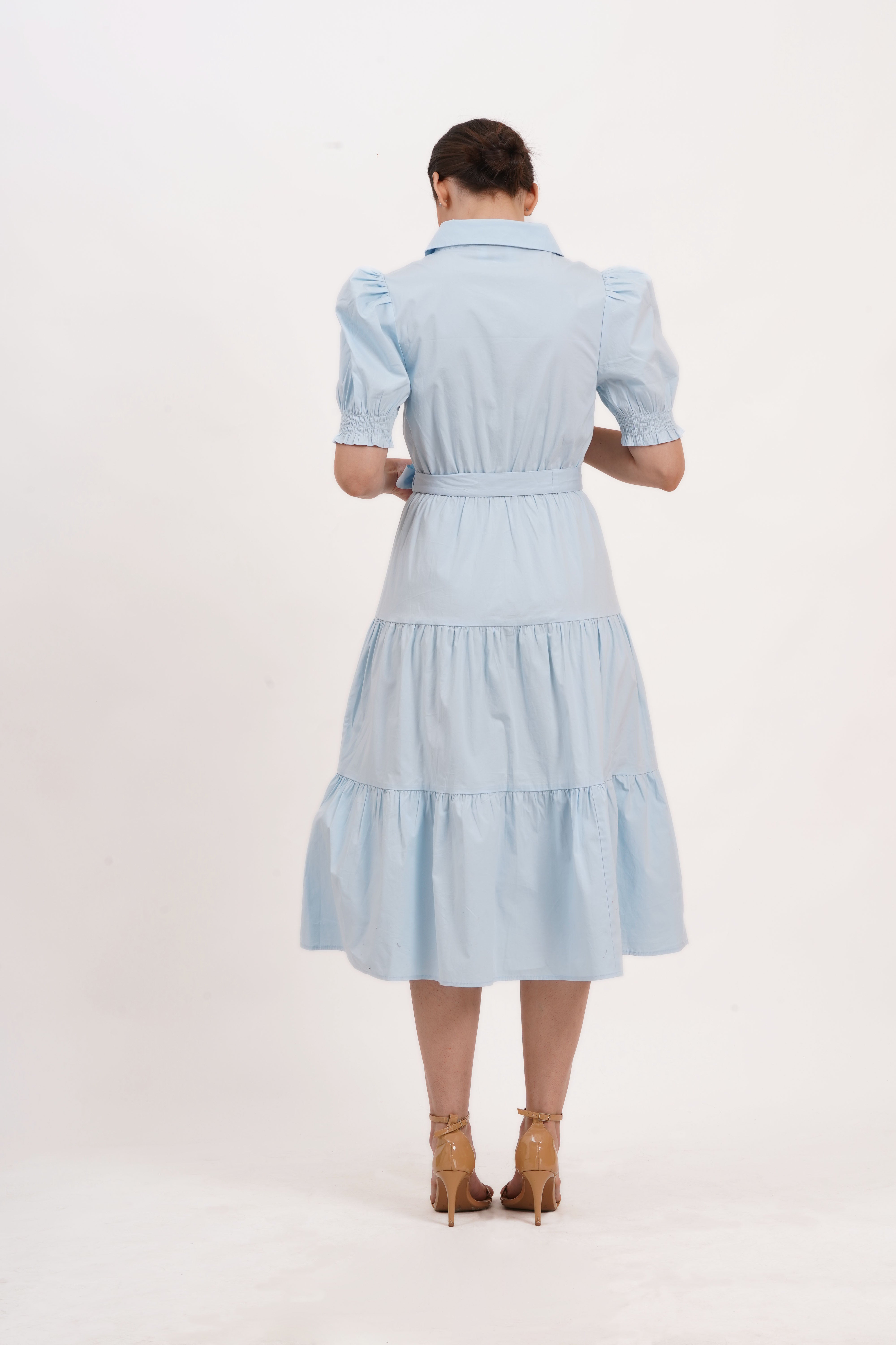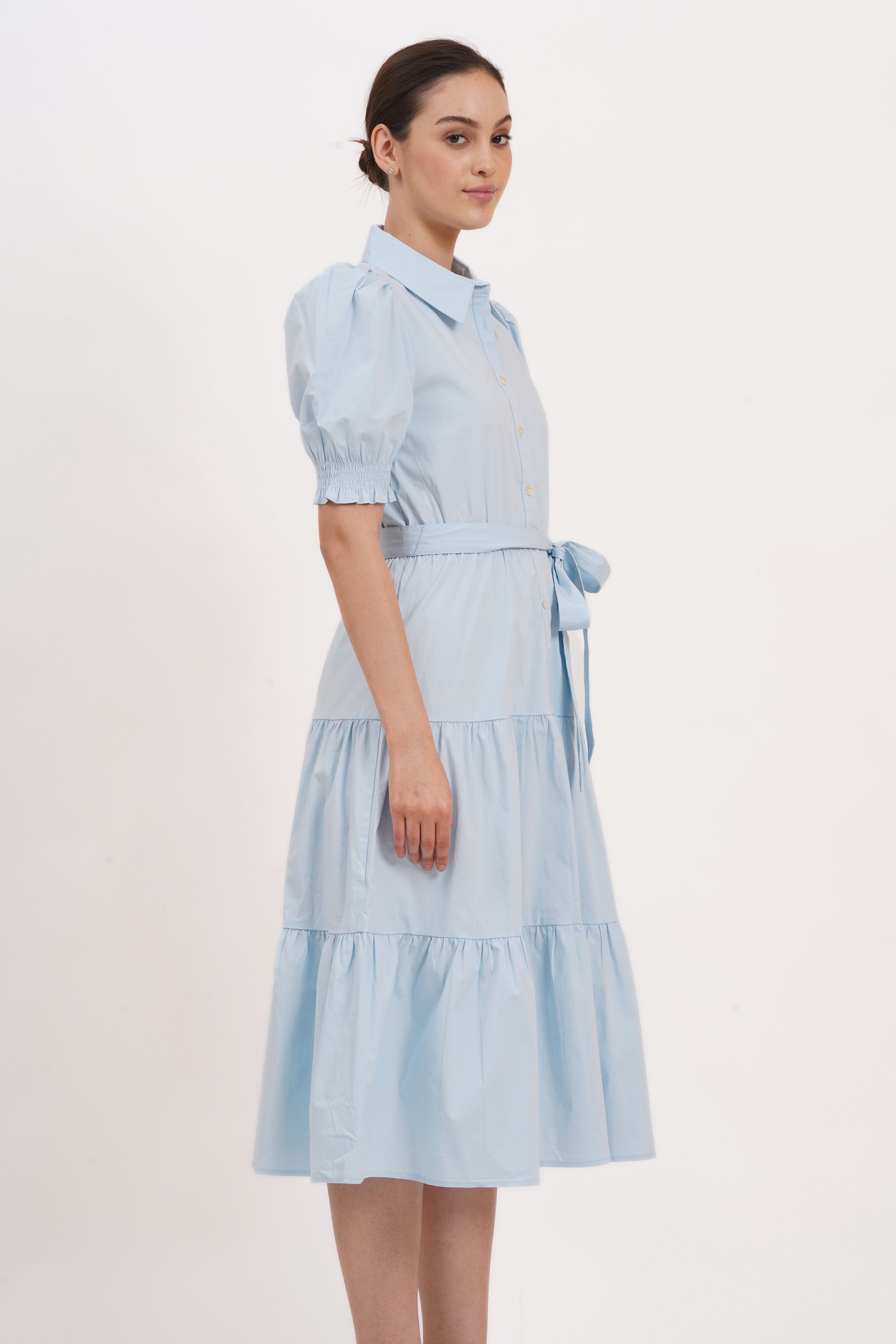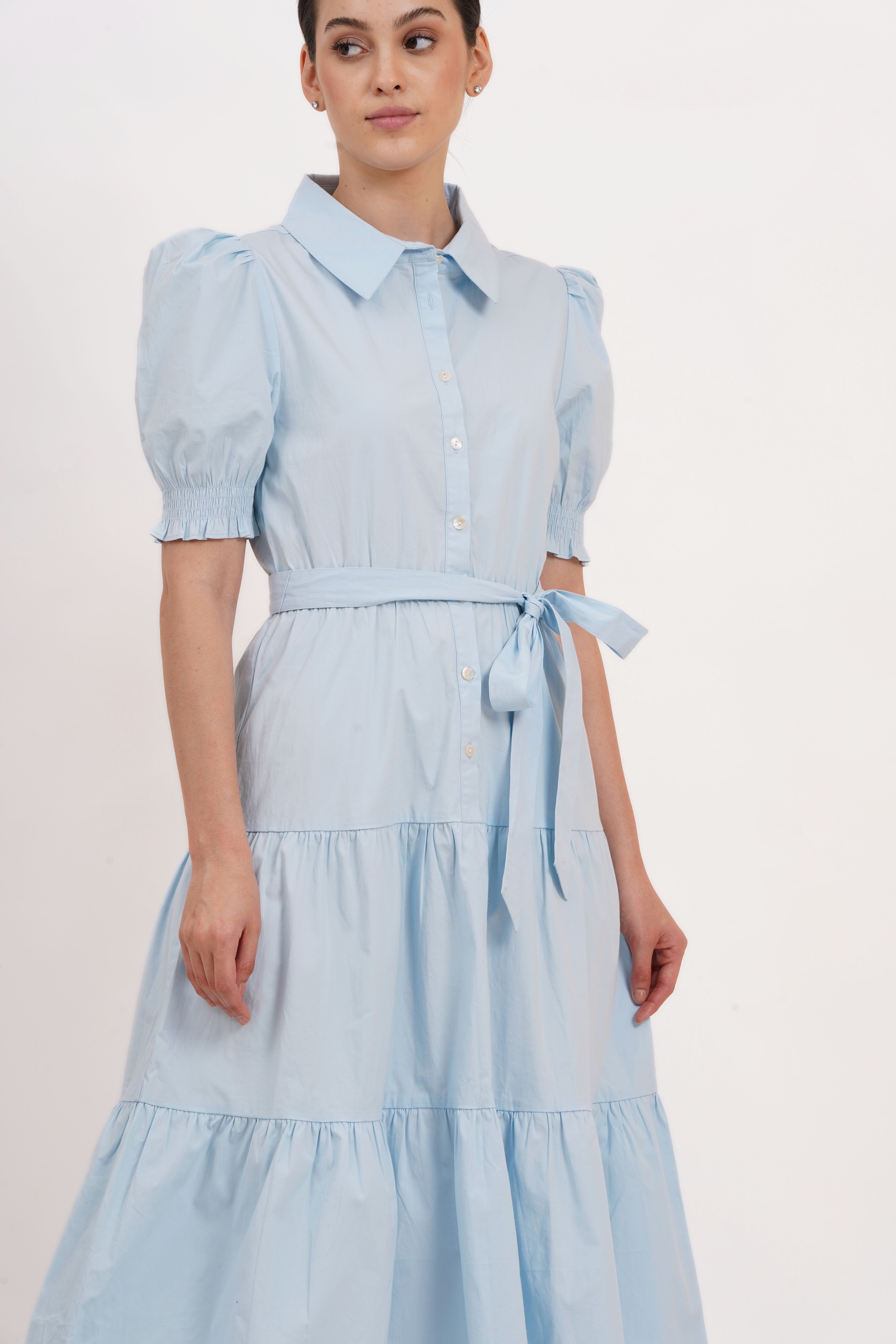 Octavia Puff Sleeve Shirt Dress Wispy Blue