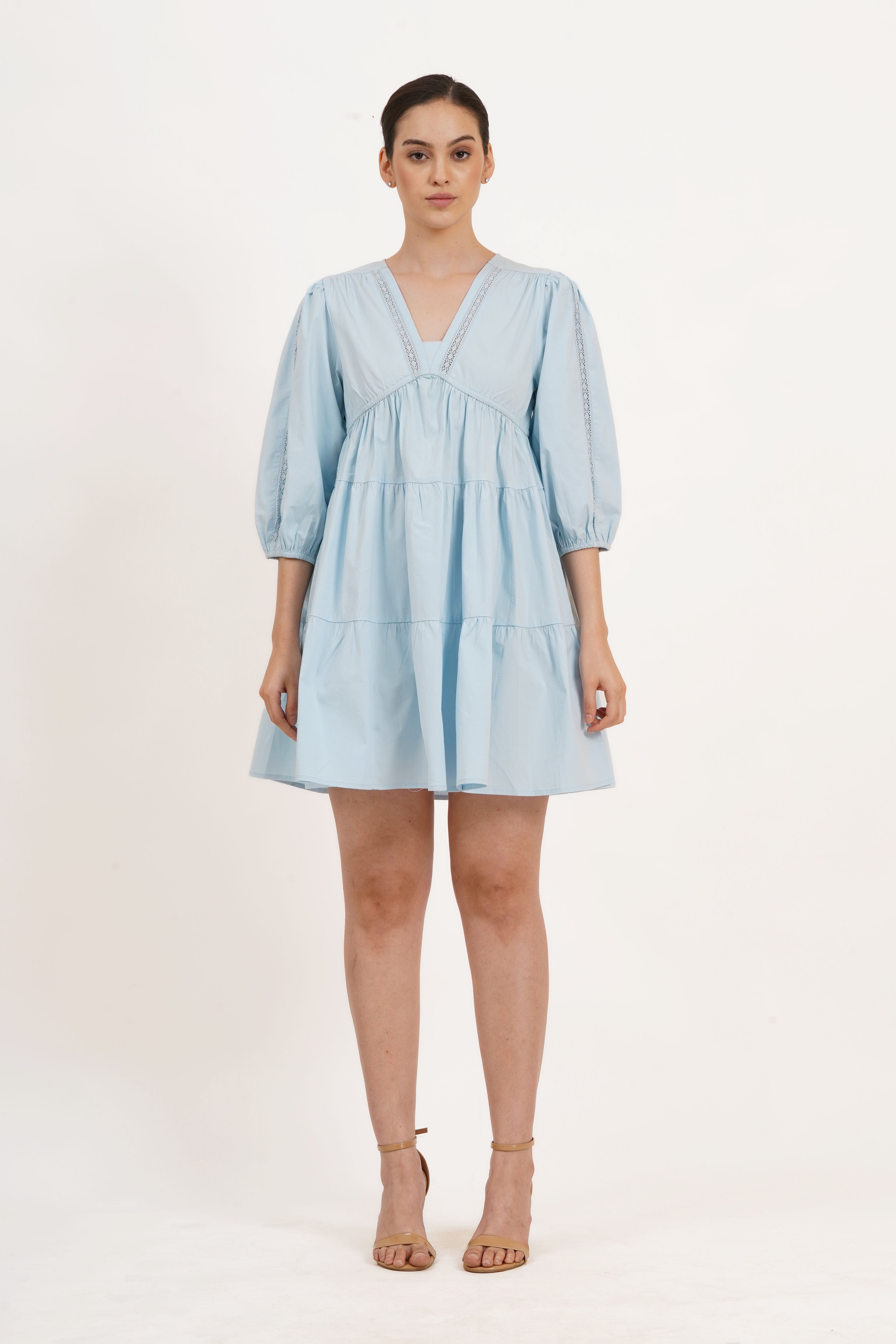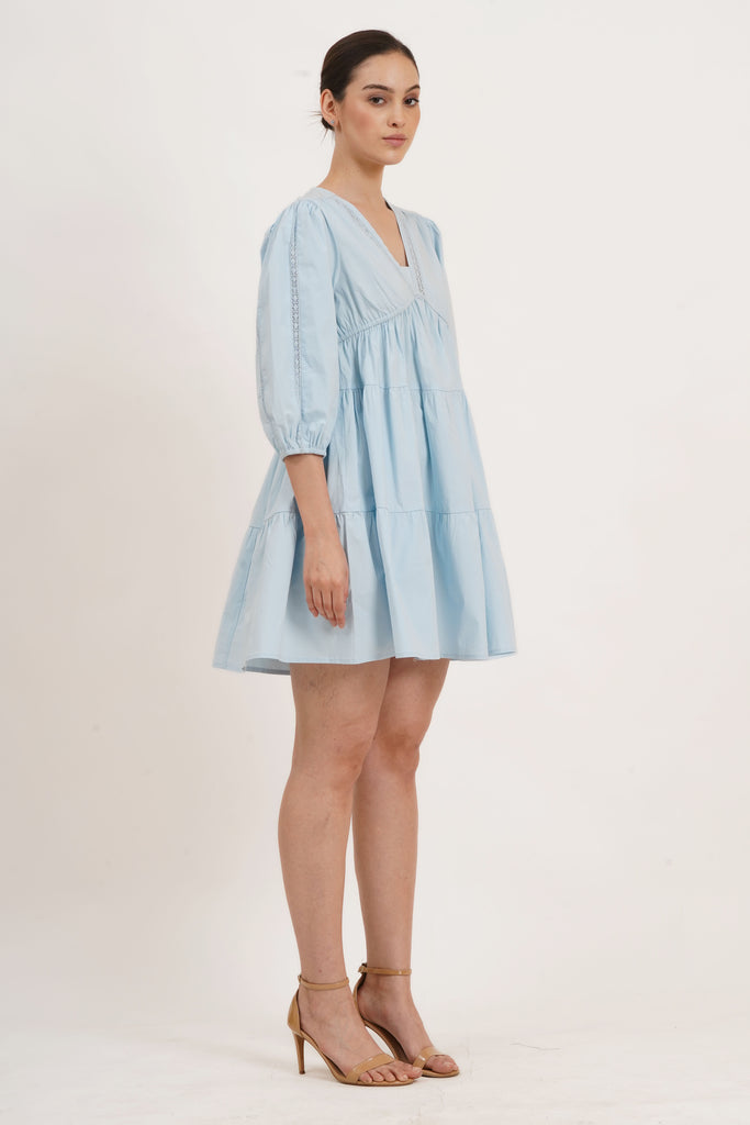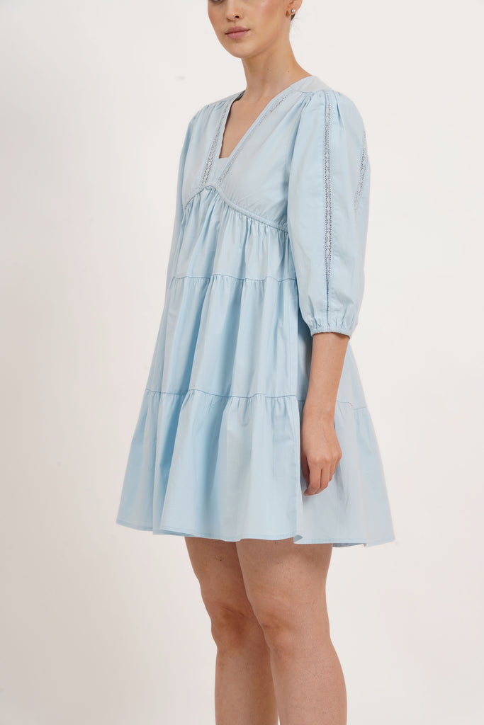 Zariah Empire Waist Mini Dress Wispy Blue