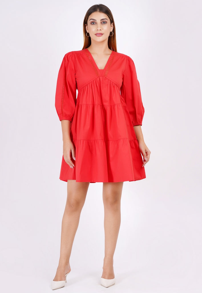 Genevieve Square Neck Mini Dress Palm Foliage Poppy Red