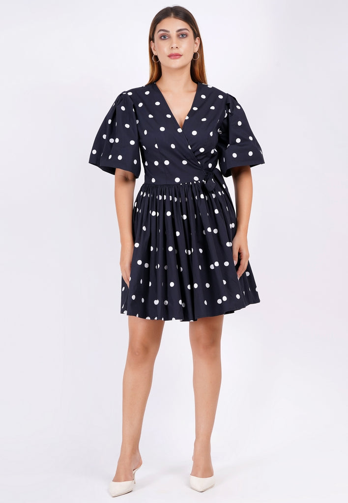 Adriana Tie-Front Midi Dress Small Polka Black White