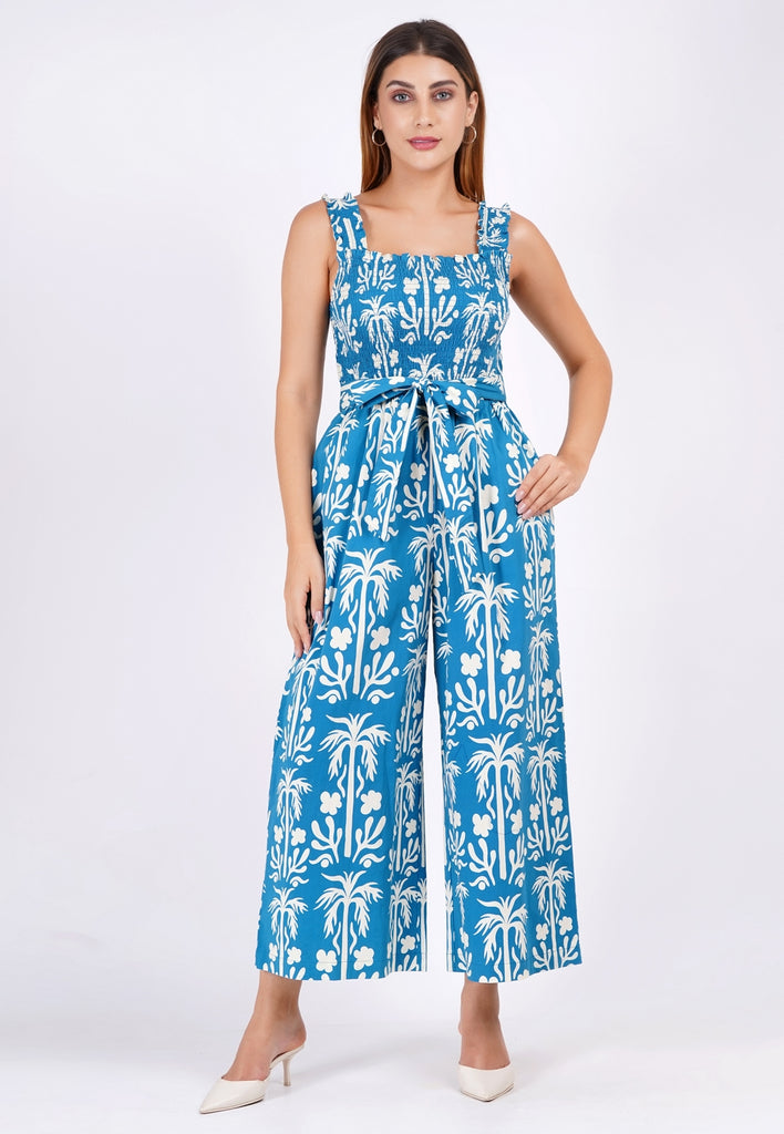 Janet Cropped Jumpsuit Palm Fields Mykonos Blue