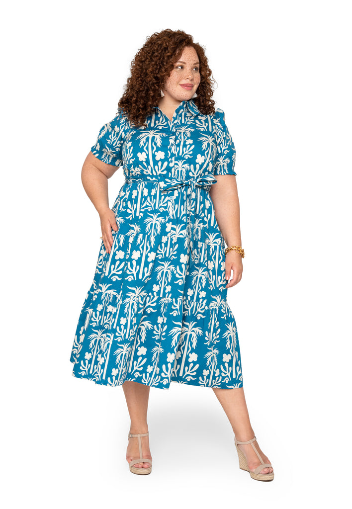Octavia Puff Sleeve Shirt Dress Palm Fields Mykonos Blue